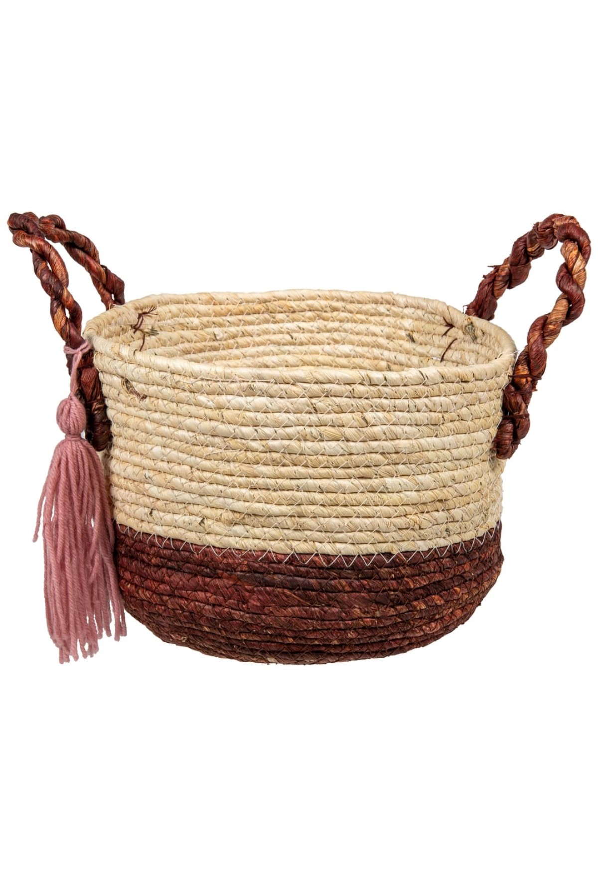 Плетеная корзина с ручками и симпатичной шерстяной кисточкой из коллекции "Южная Америка" станет отличным функциональным решением для открытого хранения вещей и разных мелочей, которые обычно некуда сложить.