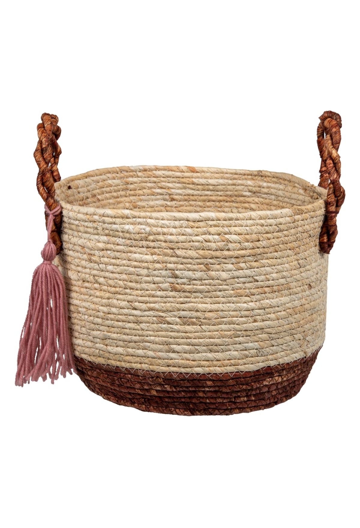 Плетеная корзина с ручками и симпатичной шерстяной кисточкой из коллекции "Южная Америка" станет отличным функциональным решением для открытого хранения вещей и разных мелочей, которые обычно некуда сложить.