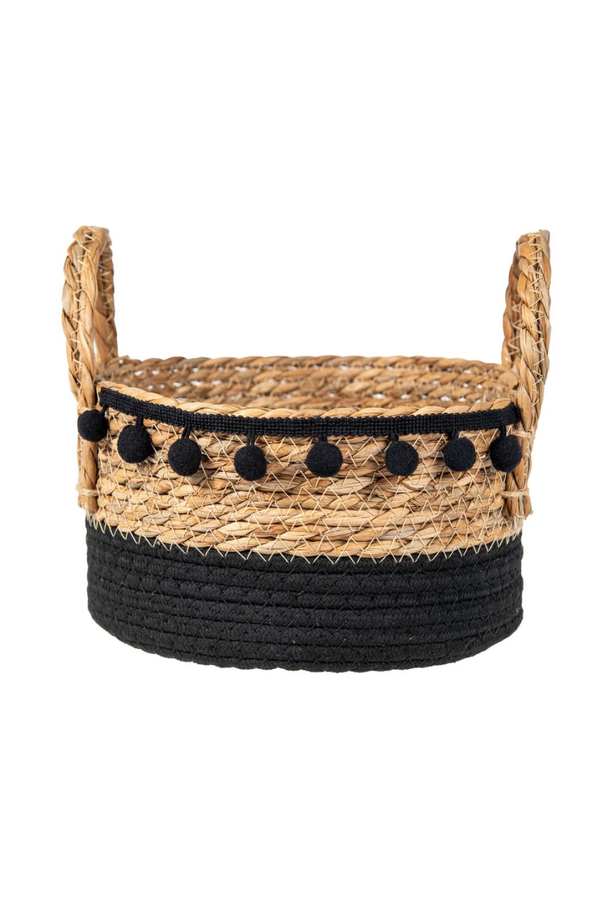 Плетеная корзина с оригинальной тесьмой с текстильными шариками из коллекции "Южная Америка" станет отличным функциональным решением для открытого хранения вещей и разных мелочей, которые обычно некуда сложить.