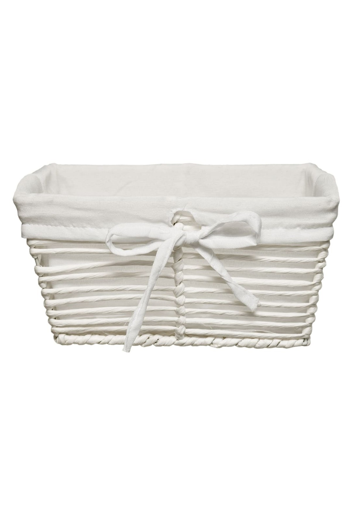 Стеллажная корзина из бумажной ленты в трендовом белом цвете идеально впишется в любой современный интерьер. Создана из природных материалов, поэтому подойдет приверженцам эко-тренда.