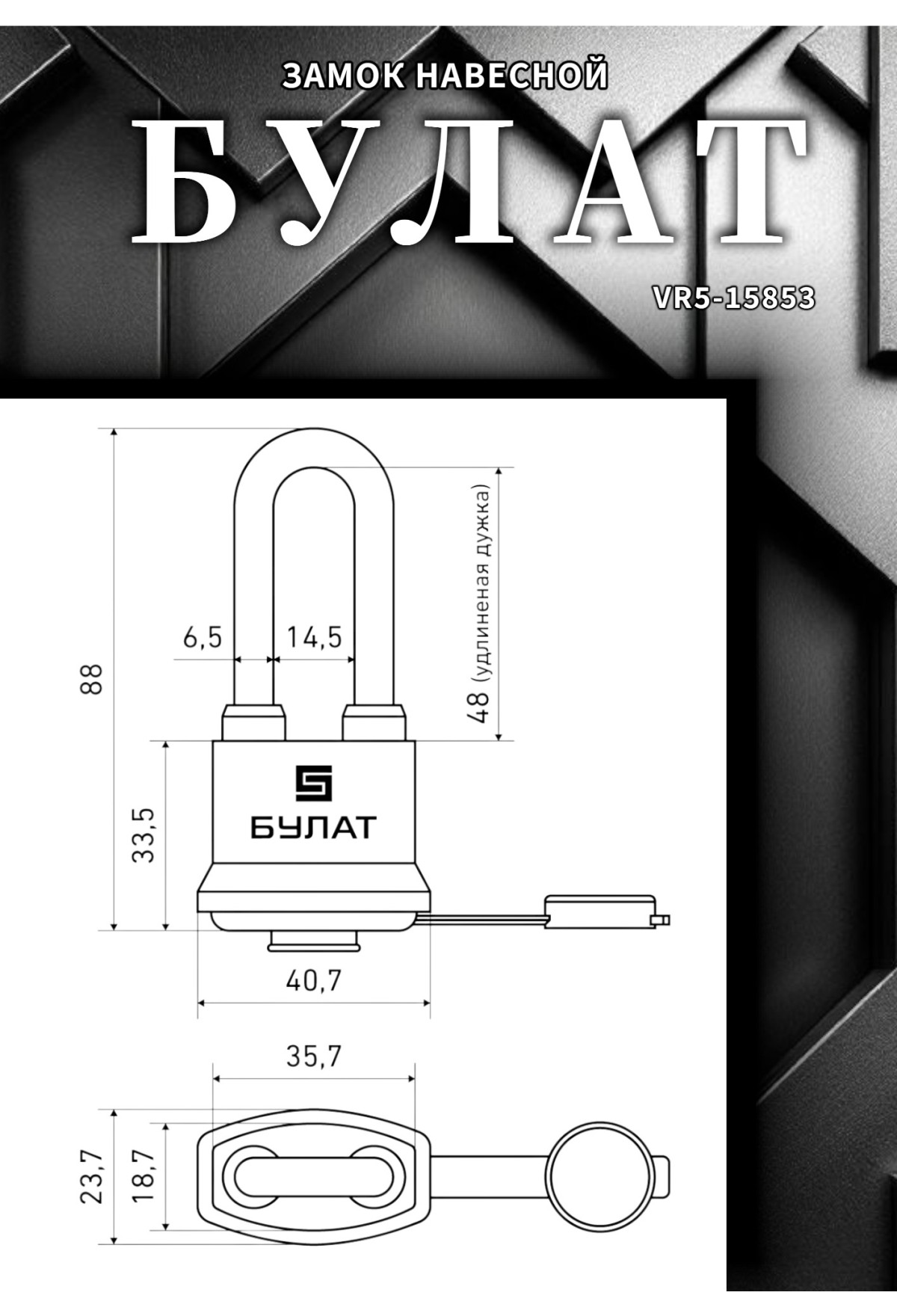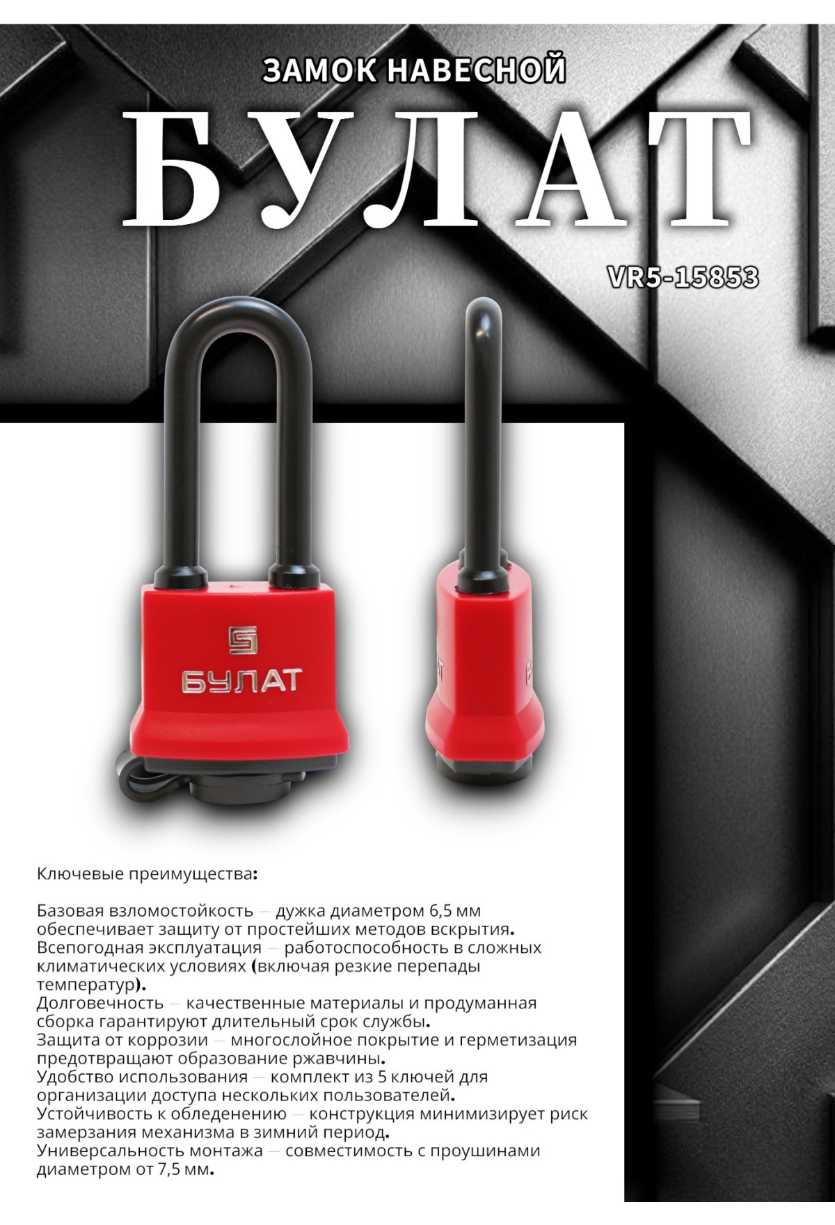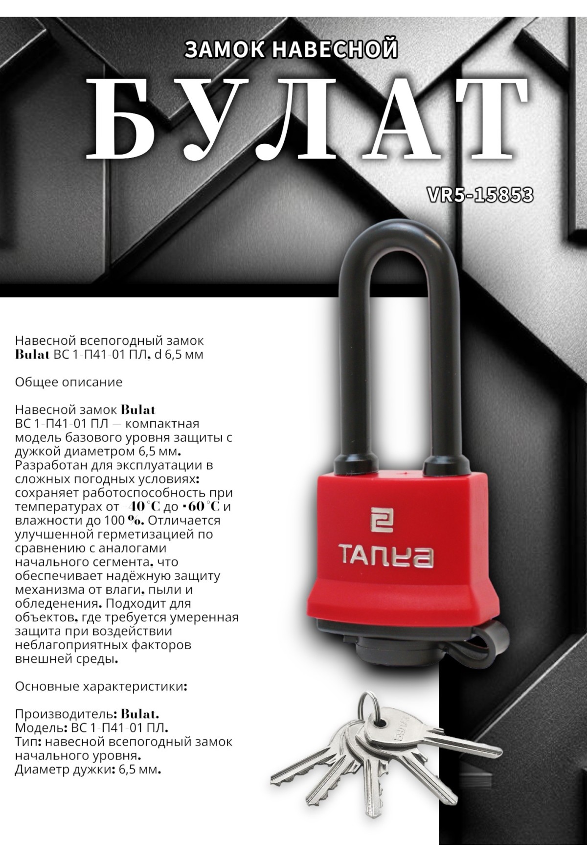 Навесной всепогодный замок Bulat ВС 1‑П41‑01 ПЛ, d 6,5 мм