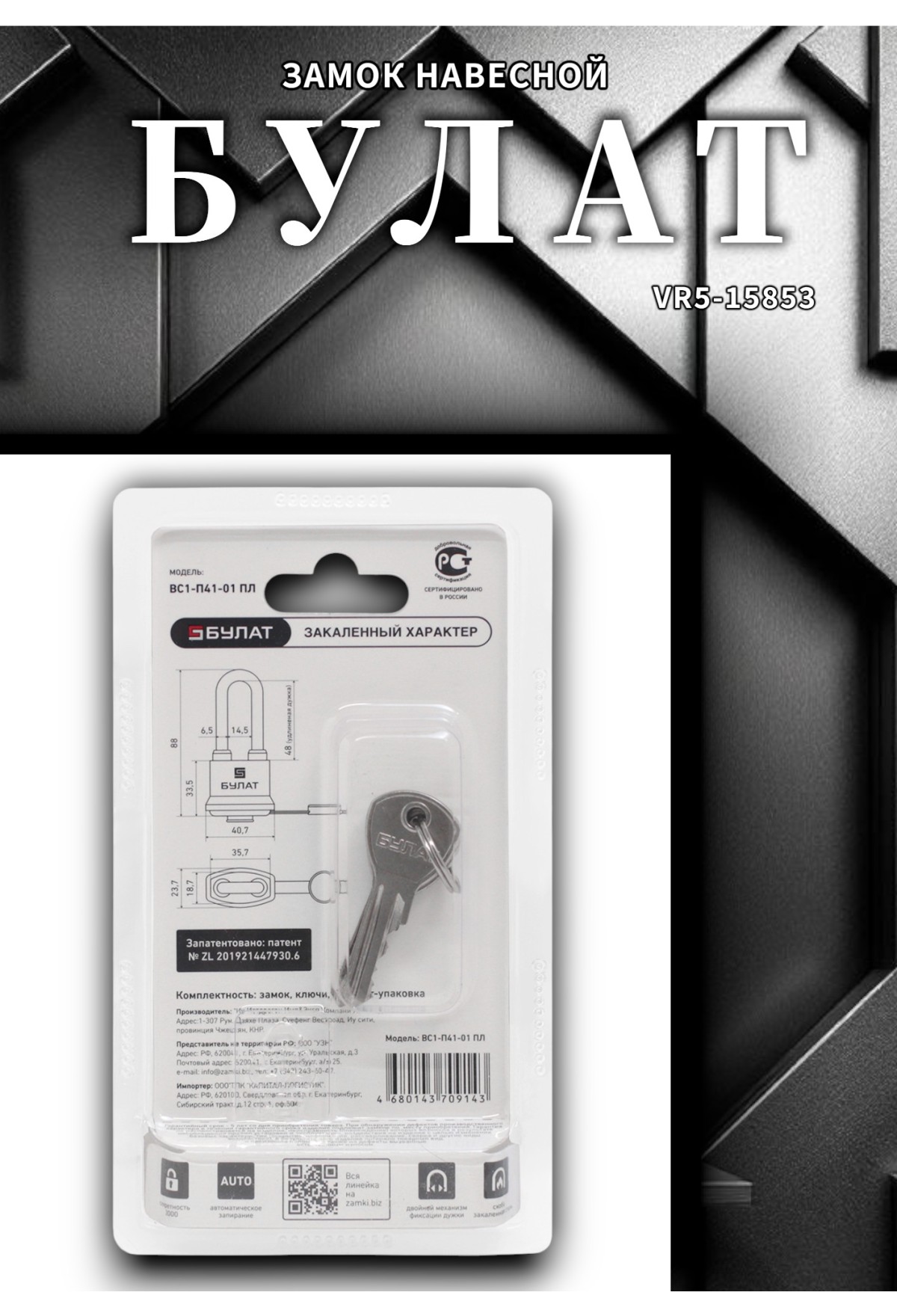 навесной замок Bulat ВС 1‑П41‑01 ПЛ — 1 шт.;