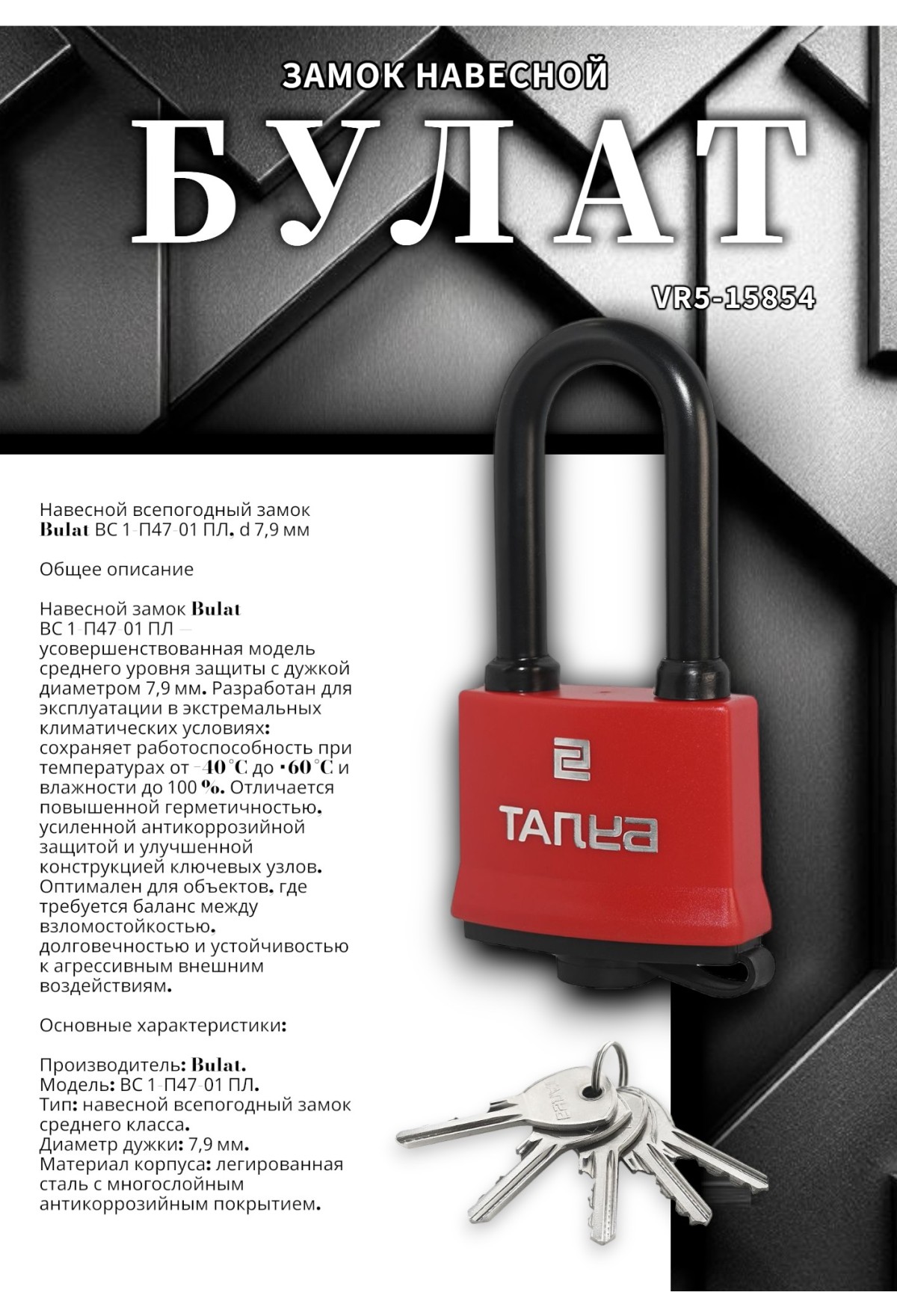Навесной всепогодный замок Bulat ВС 1‑П47‑01 ПЛ, d 7,9 мм
