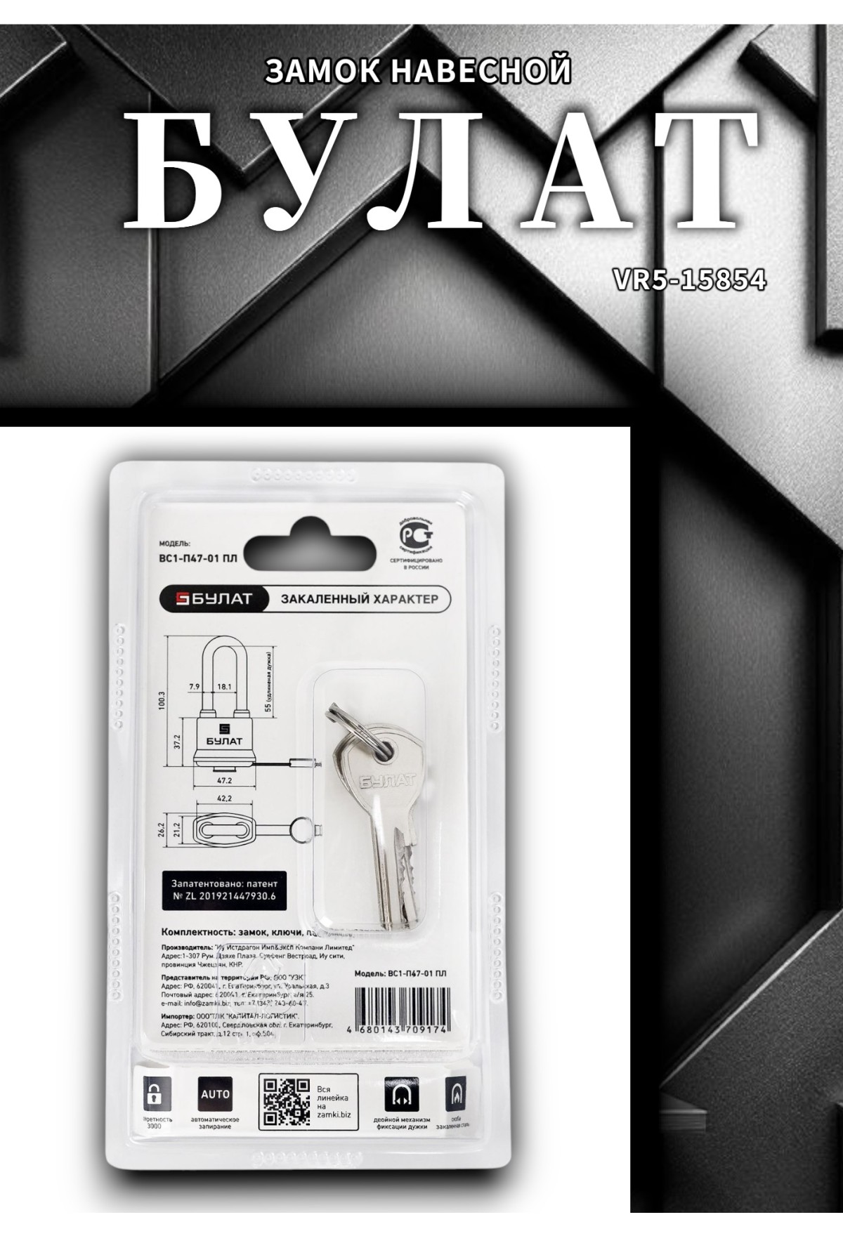 навесной замок Bulat ВС 1‑П47‑01 ПЛ — 1 шт.;