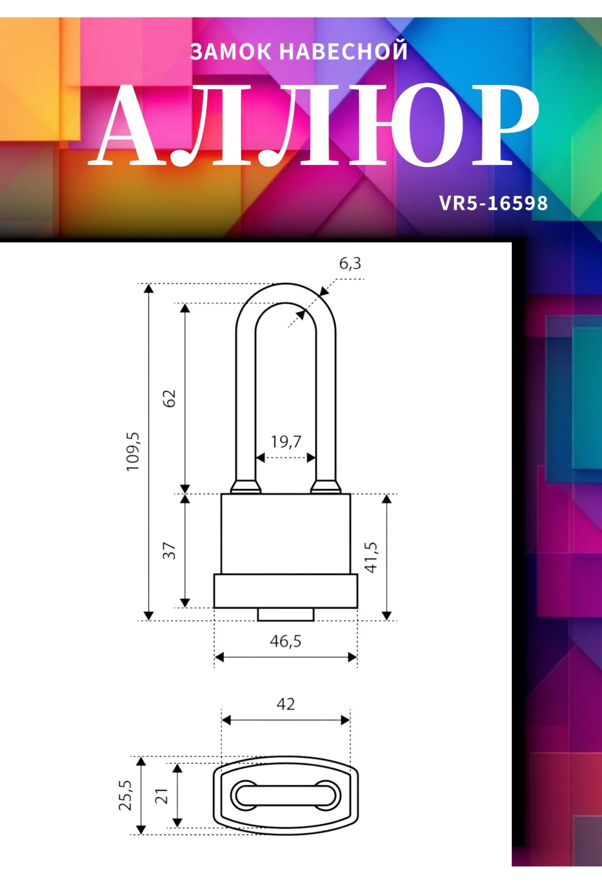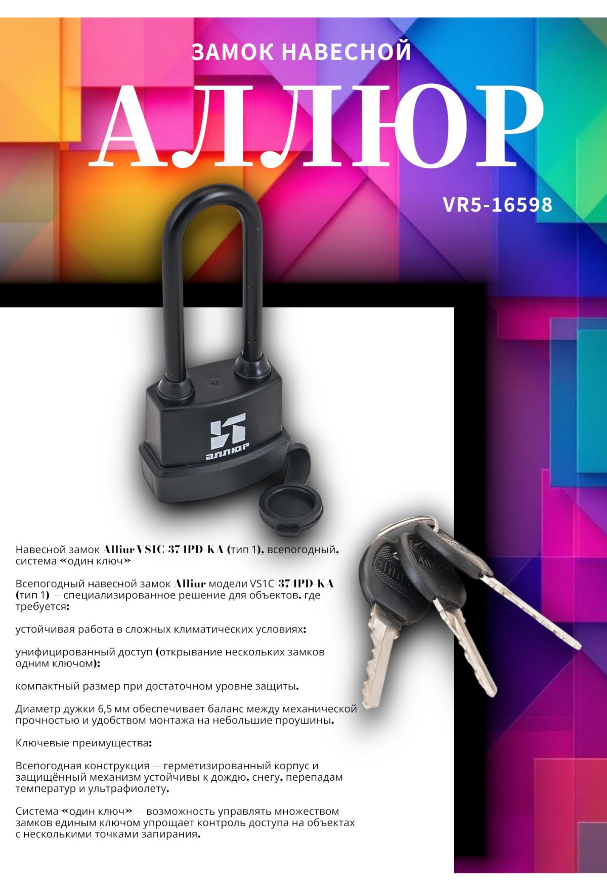 Навесной замок Alliur VS1C‑374PD‑KA (тип 1), всепогодный, система «один ключ»