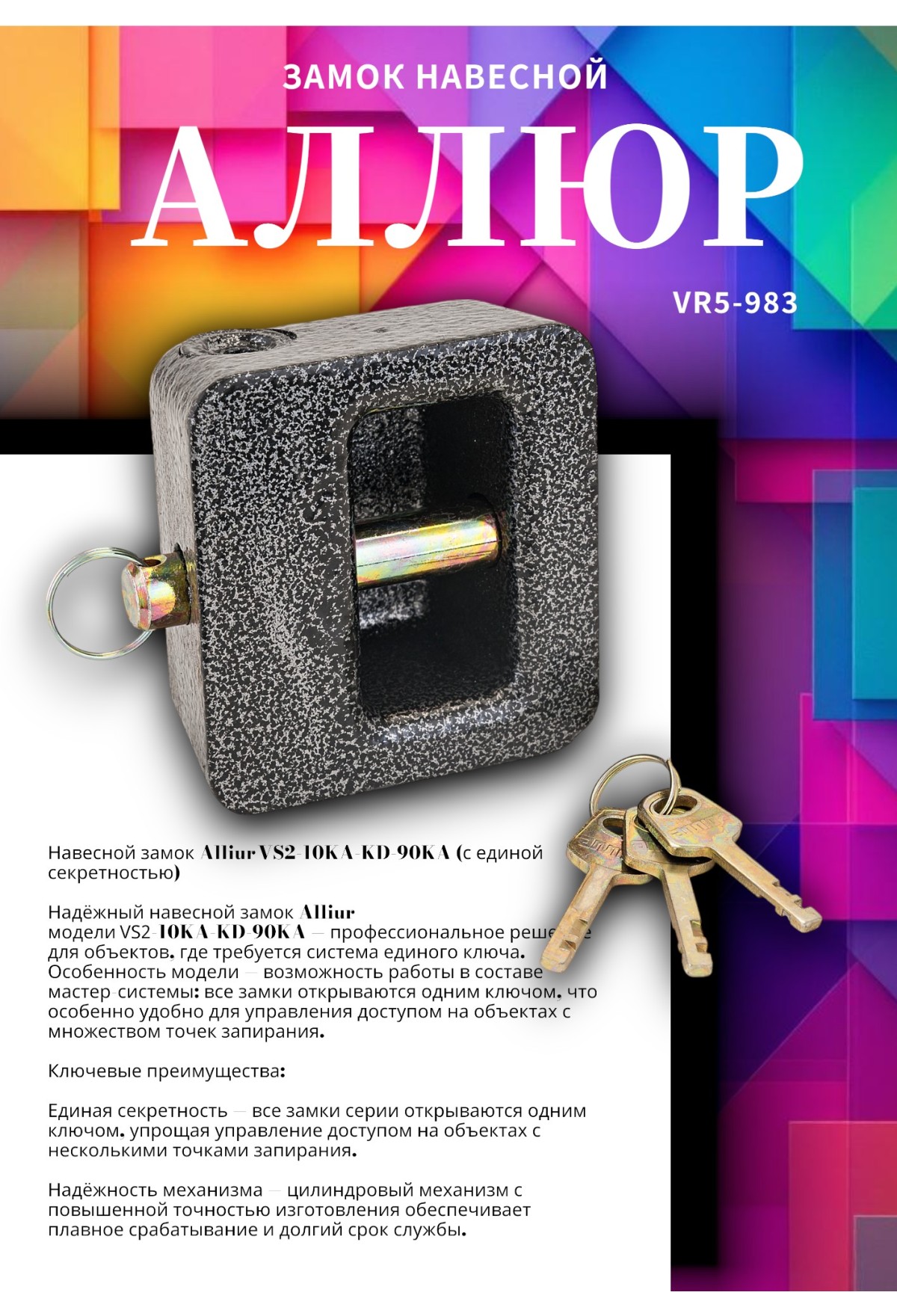 Навесной замок Alliur VS2‑10KA‑KD‑90KA (с единой секретностью)