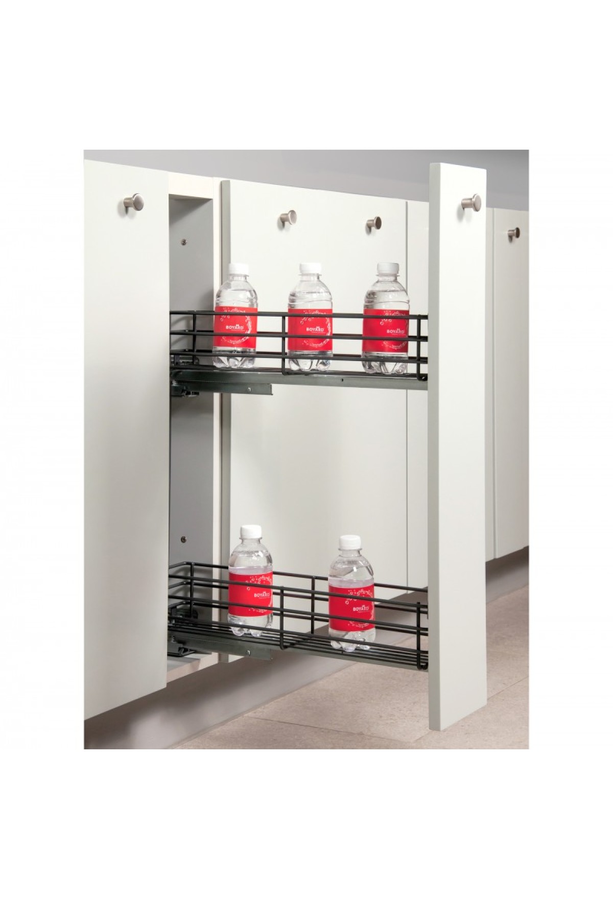 Bellissimo функционирует на направляющих скрытого монтажа полного выдвижения с амортизацией. Модель обеспечит удобный полный доступ к продуктам и жидкостям. Ассортимент Bellissimo включает четыре варианта бутылочниц для нижних баз кухонных гарнитуров: для модулей размером 150 мм и 200 мм с левым или правым расположением направляющих.