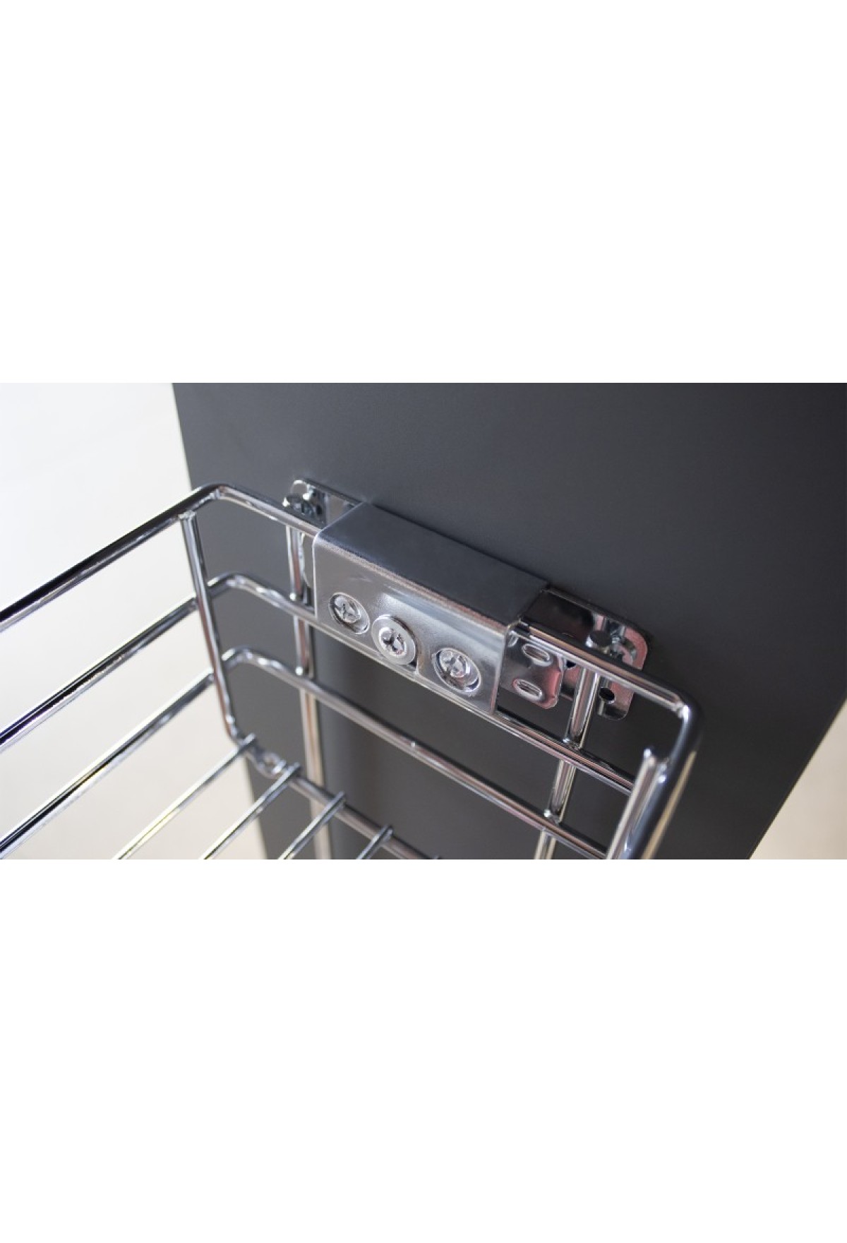 Bellissimo KR08 — компактная бутылочница в порошковом покрытии графитового оттенка в традиционном дизайне с прутком из круглой проволоки. Модель наведёт порядок в мелочах и при этом займёт совсем немного места. Бутылочница предложена по доступной стоимости и предназначена для демократичных кухонных гарнитуров.