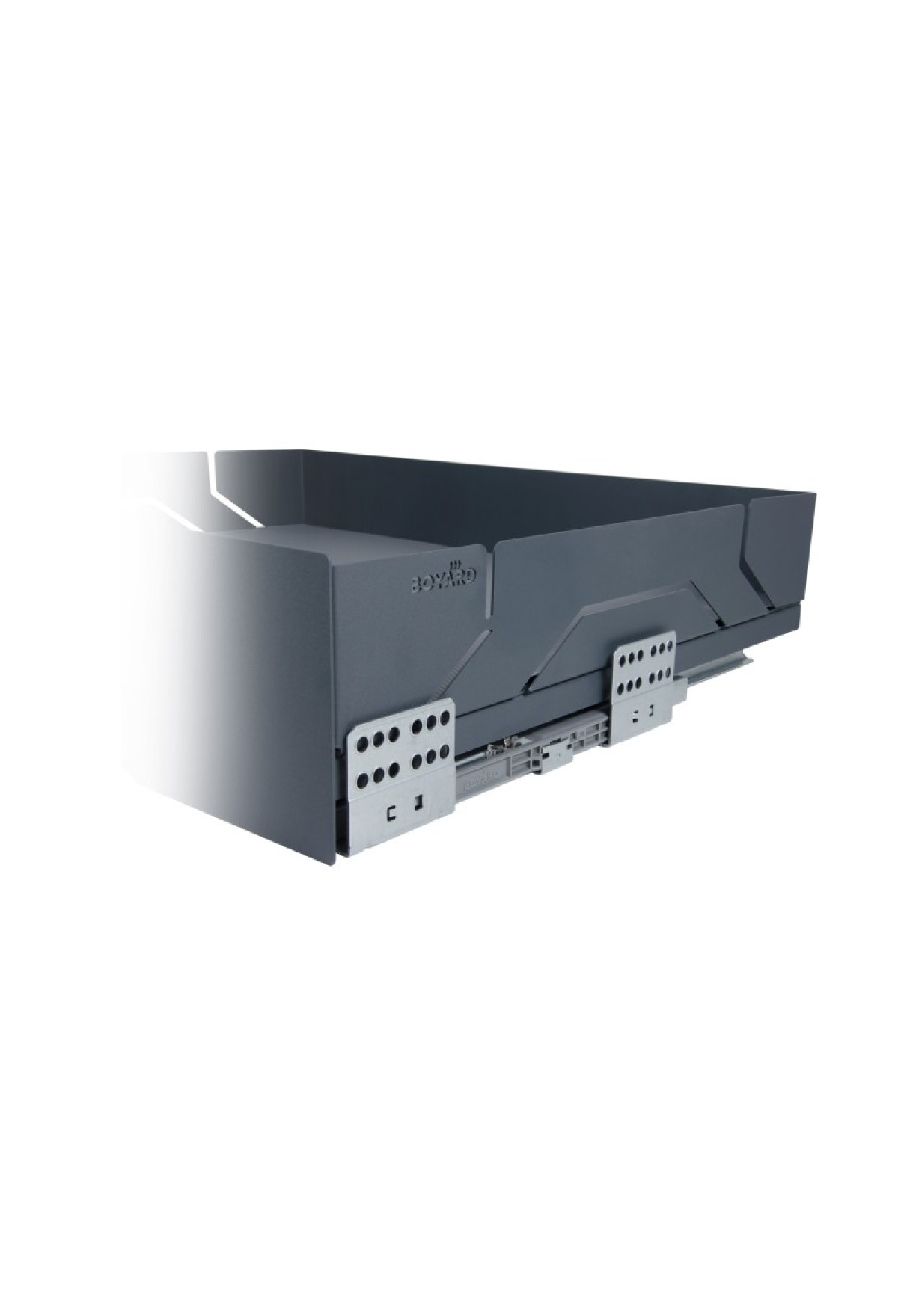 X.BOX KR45 – стальной выдвижной ящик с высоким полноценным фасадом, монобоковинами в эксклюзивном дизайне и противоскользящим ковриком.