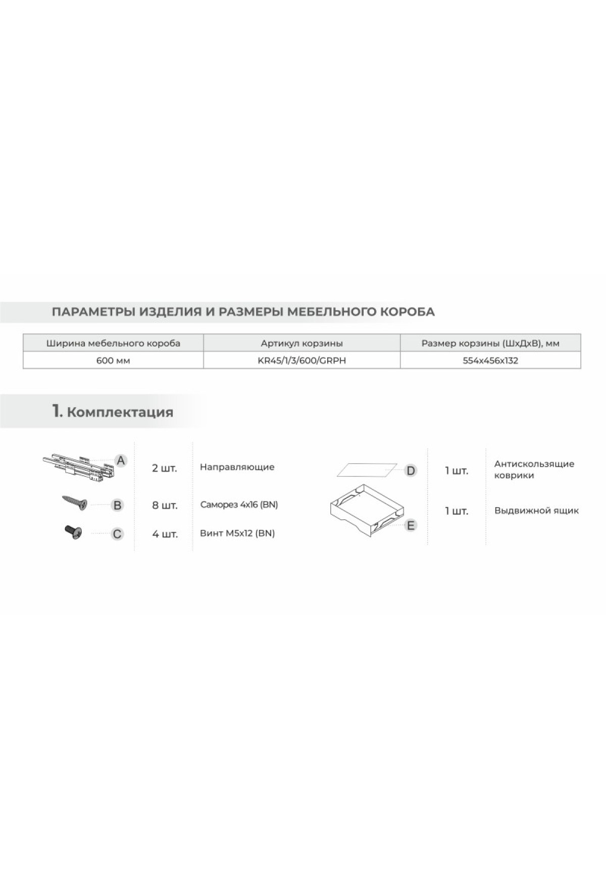 Стильный выдвижной ящик шириной 600 мм и грузоподъёмностью 30 кг выполнен из листа стали с надёжным покрытием в цвете Графит высокой степени антикоррозийной устойчивости. Высокий фасад помогает удобно выдвигать конструкцию и предотвращает выпадение содержимого из модуля при выдвижении. Благодаря наличию фасада X.BOX KR45 готов к установке сразу после покупки.