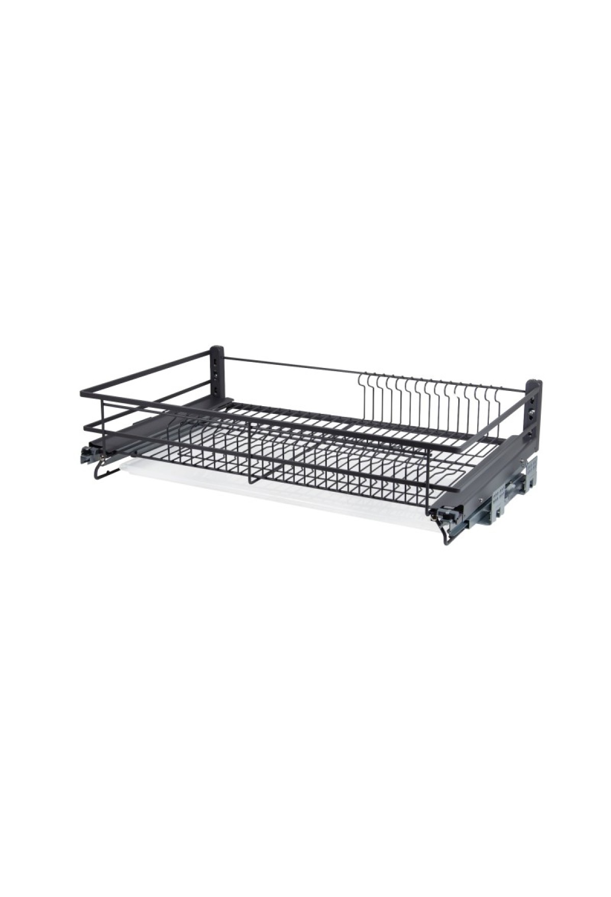 MIRA PUSH — выдвижная корзина-сушка в эксклюзивном дизайне с плоским прутком и механизмом открывания от нажатия, предназначена для хранения разноплановой посуды в нижней базе мебельного гарнитура без ручек.