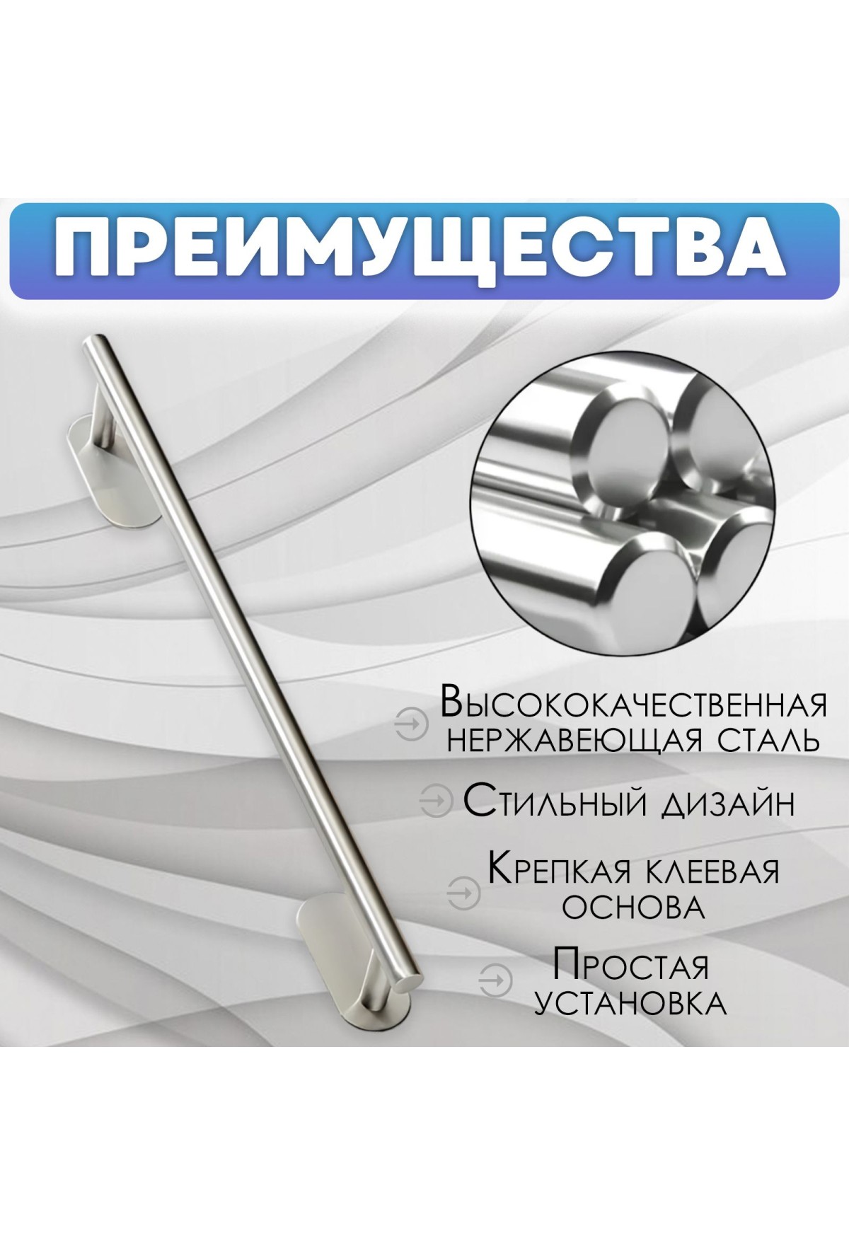 Держатель для полотенец самоклеящийся , полотенцедержатель 400мм Матовый никель