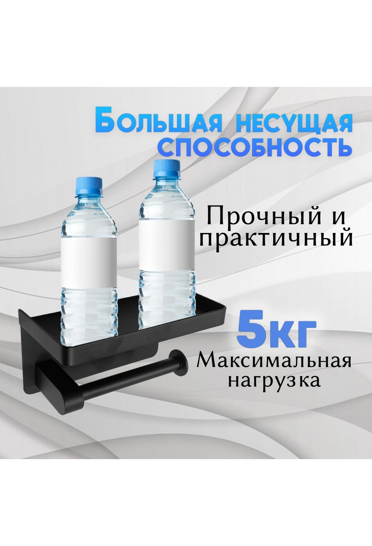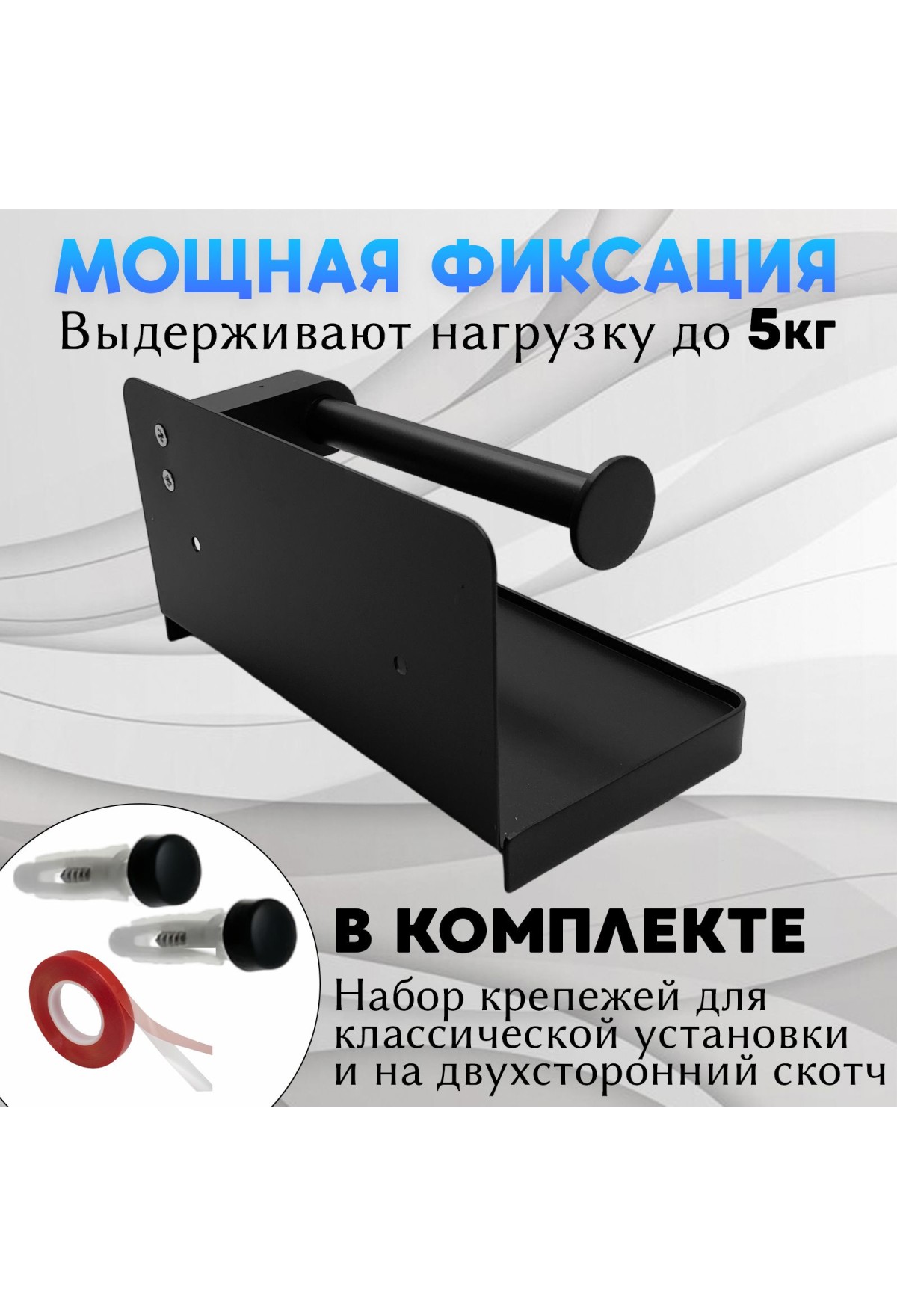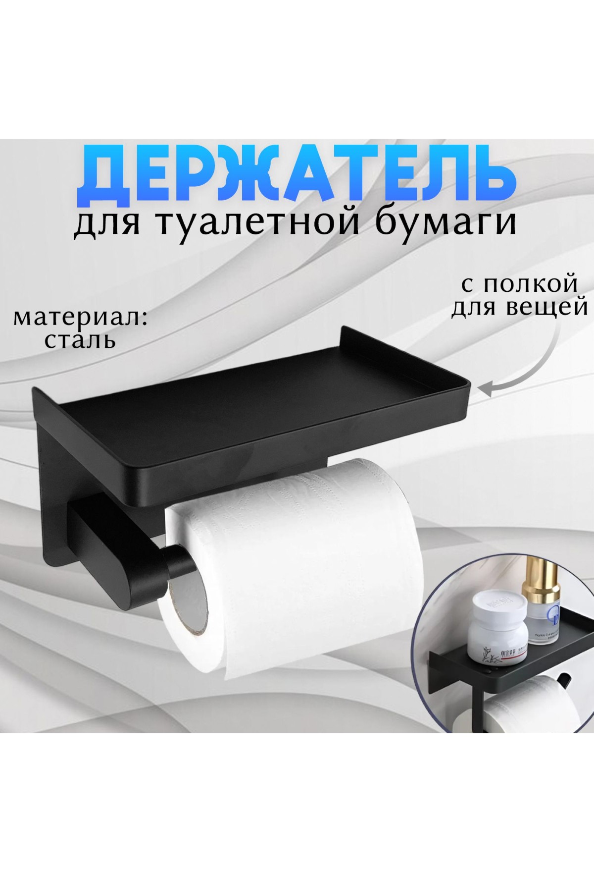 Держатель для туалетной бумаги самоклеящийся настенный с полочкой , чёрный