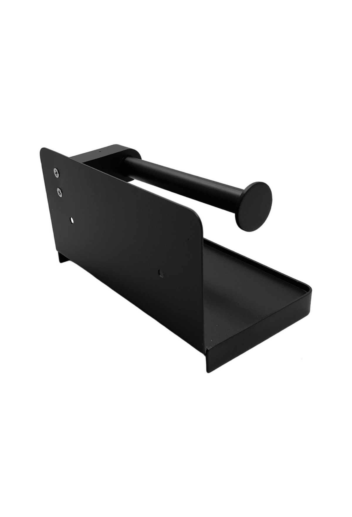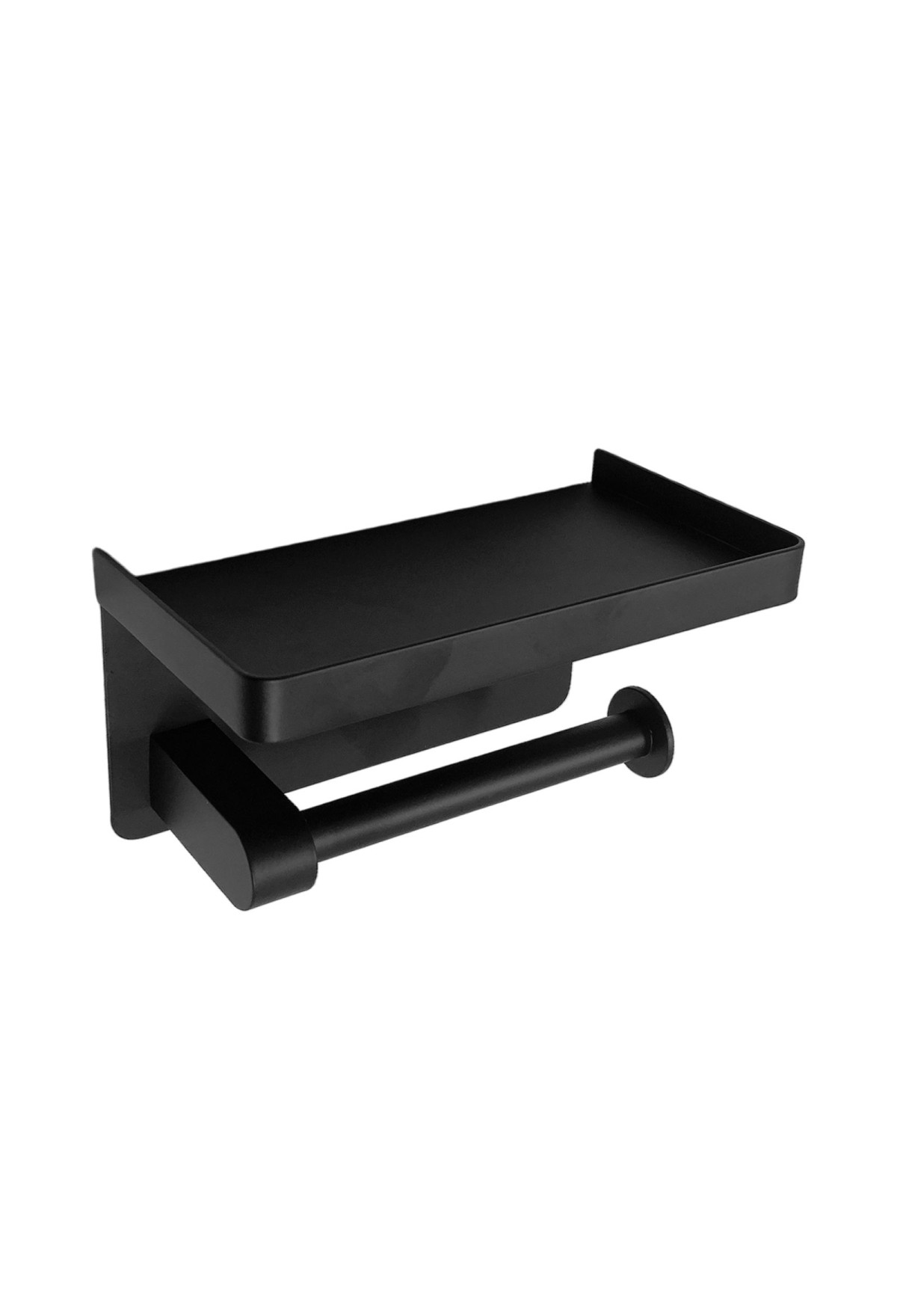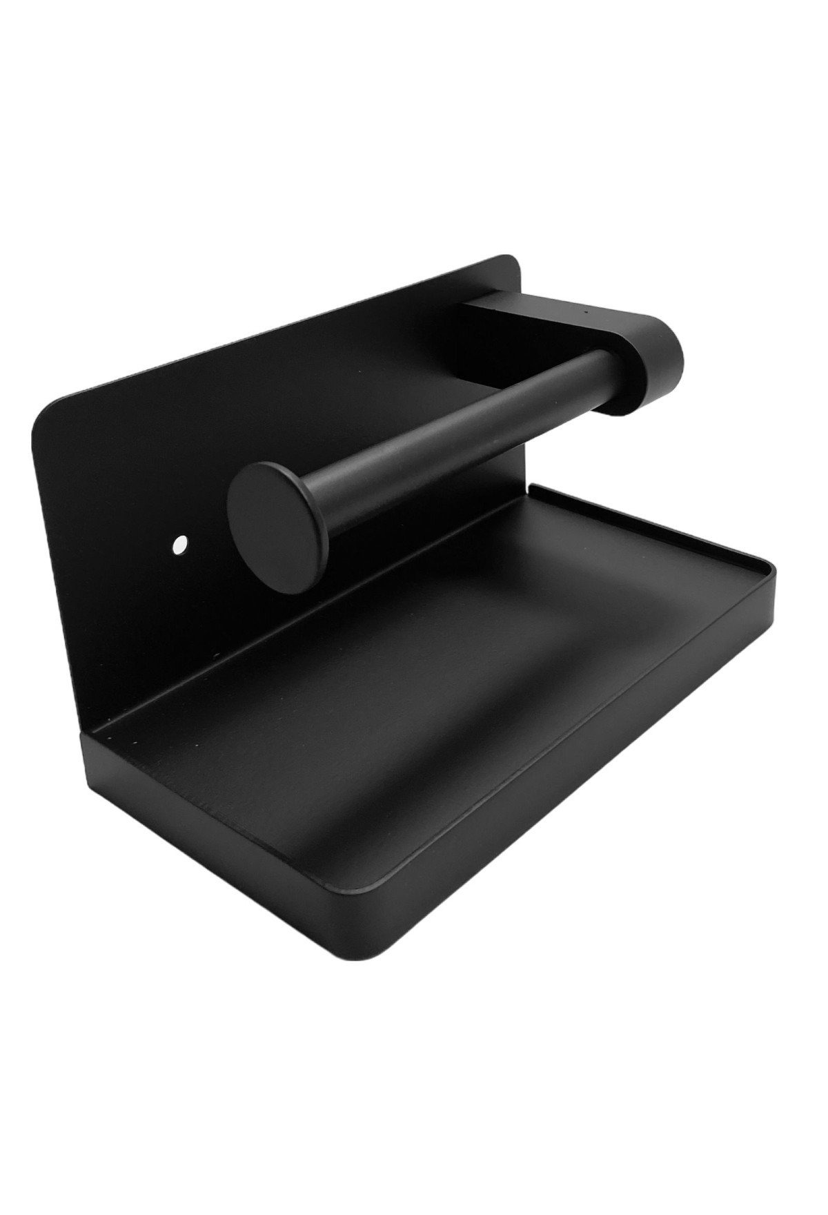 Держатель для туалетной бумаги самоклеящийся настенный с полочкой , чёрный