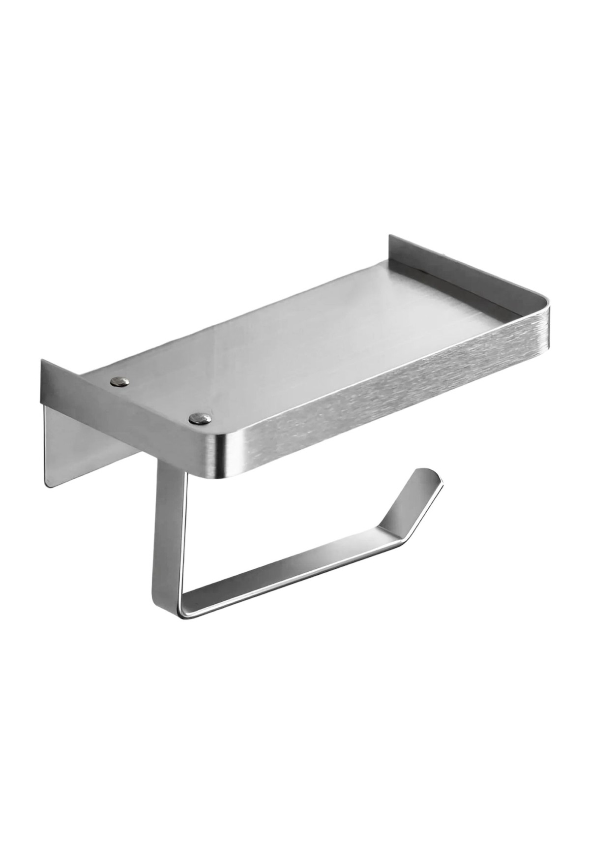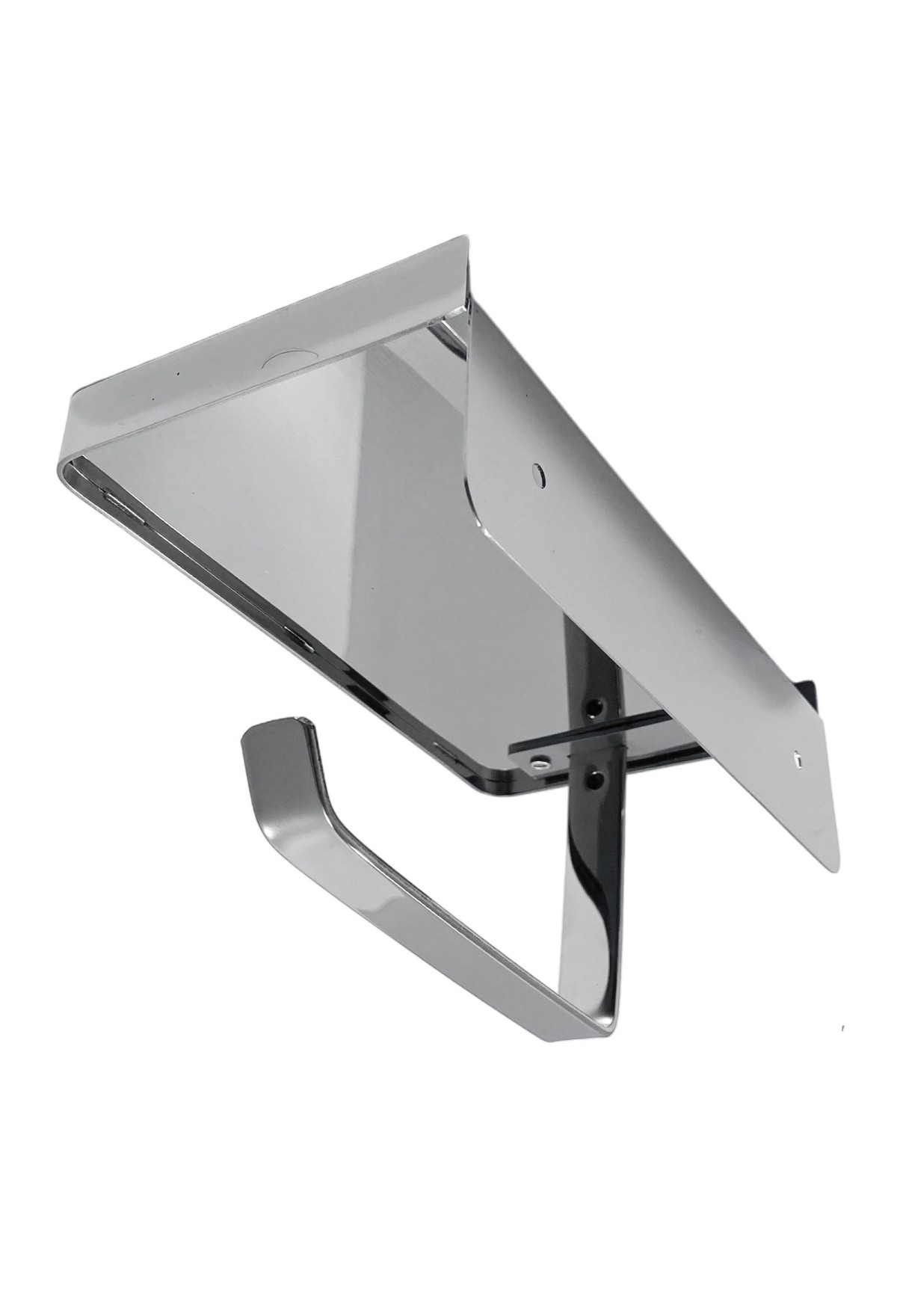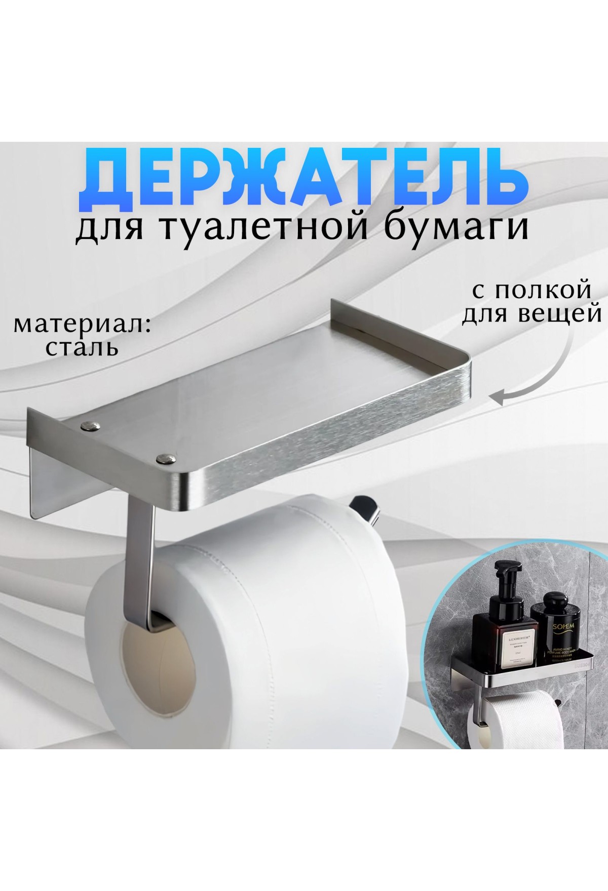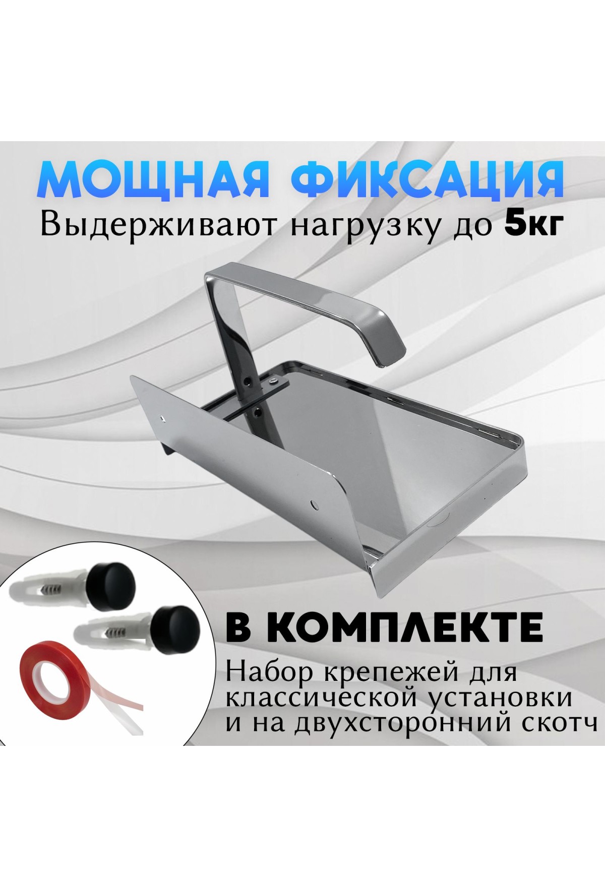 Держатель для туалетной бумаги самоклеющийся настенный с полочкой , хром