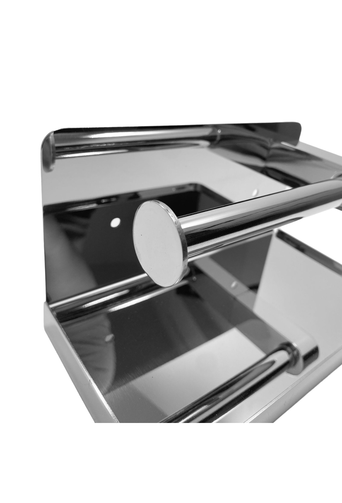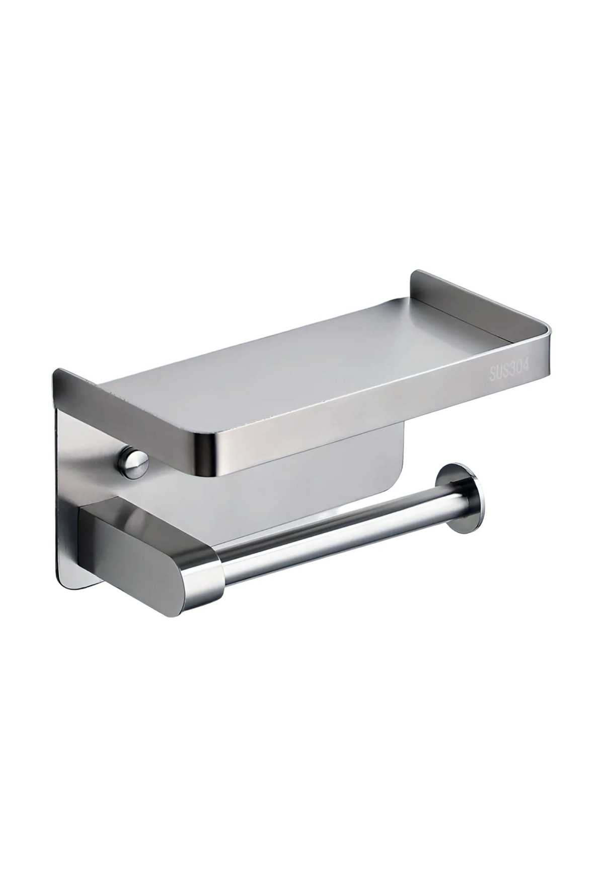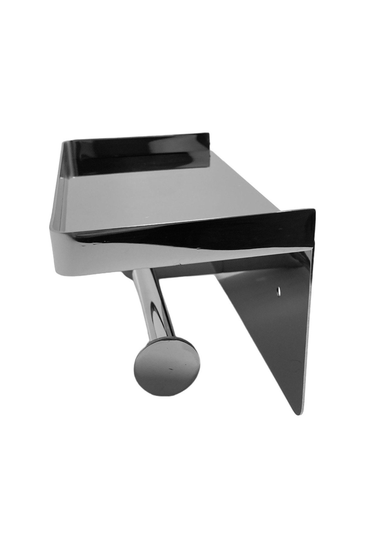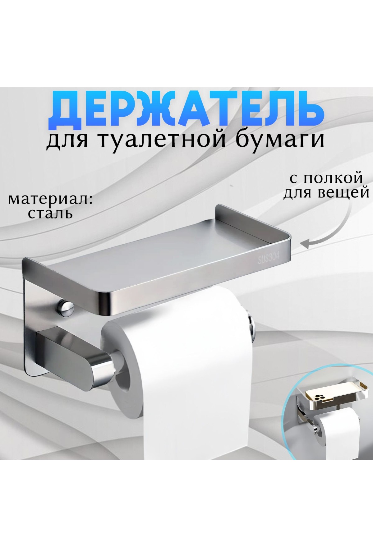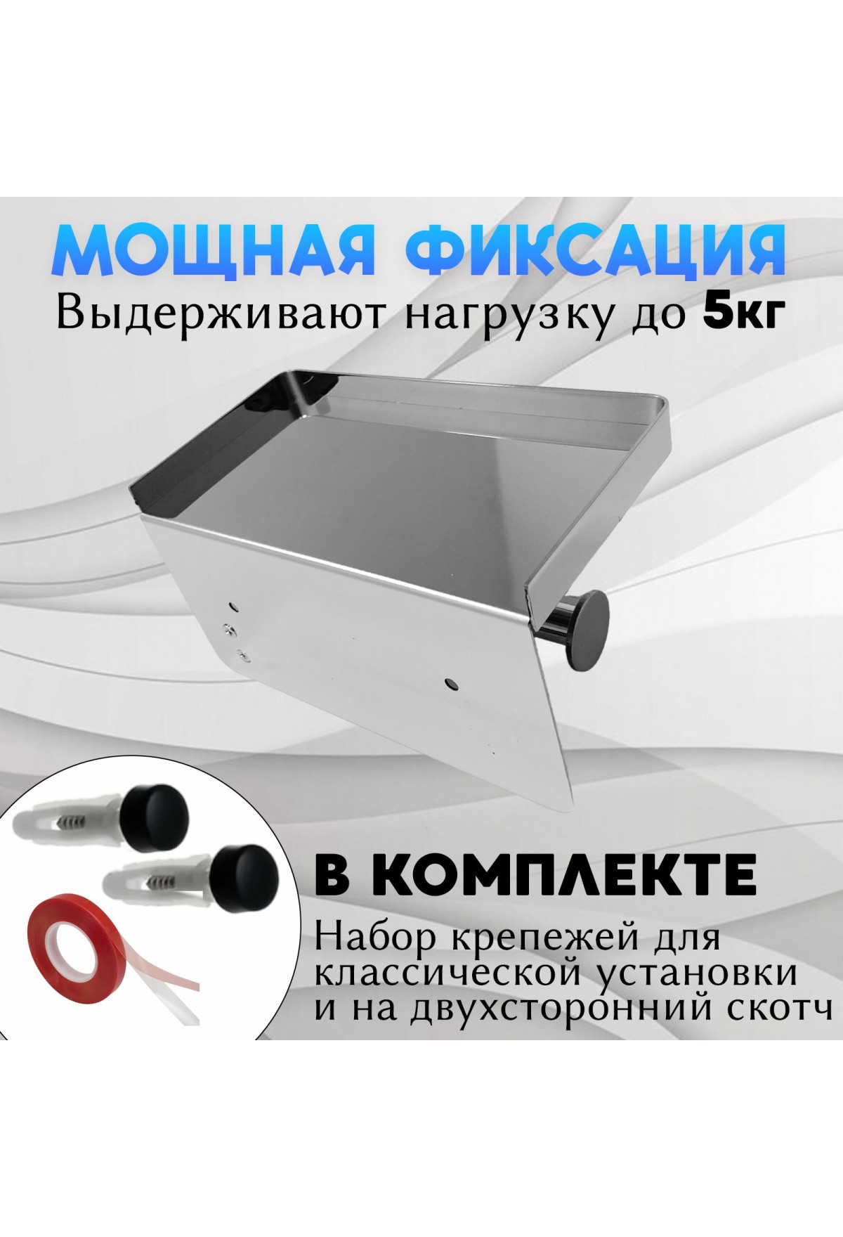 Держатель для туалетной бумаги самоклеющийся настенный с полочкой , хром
