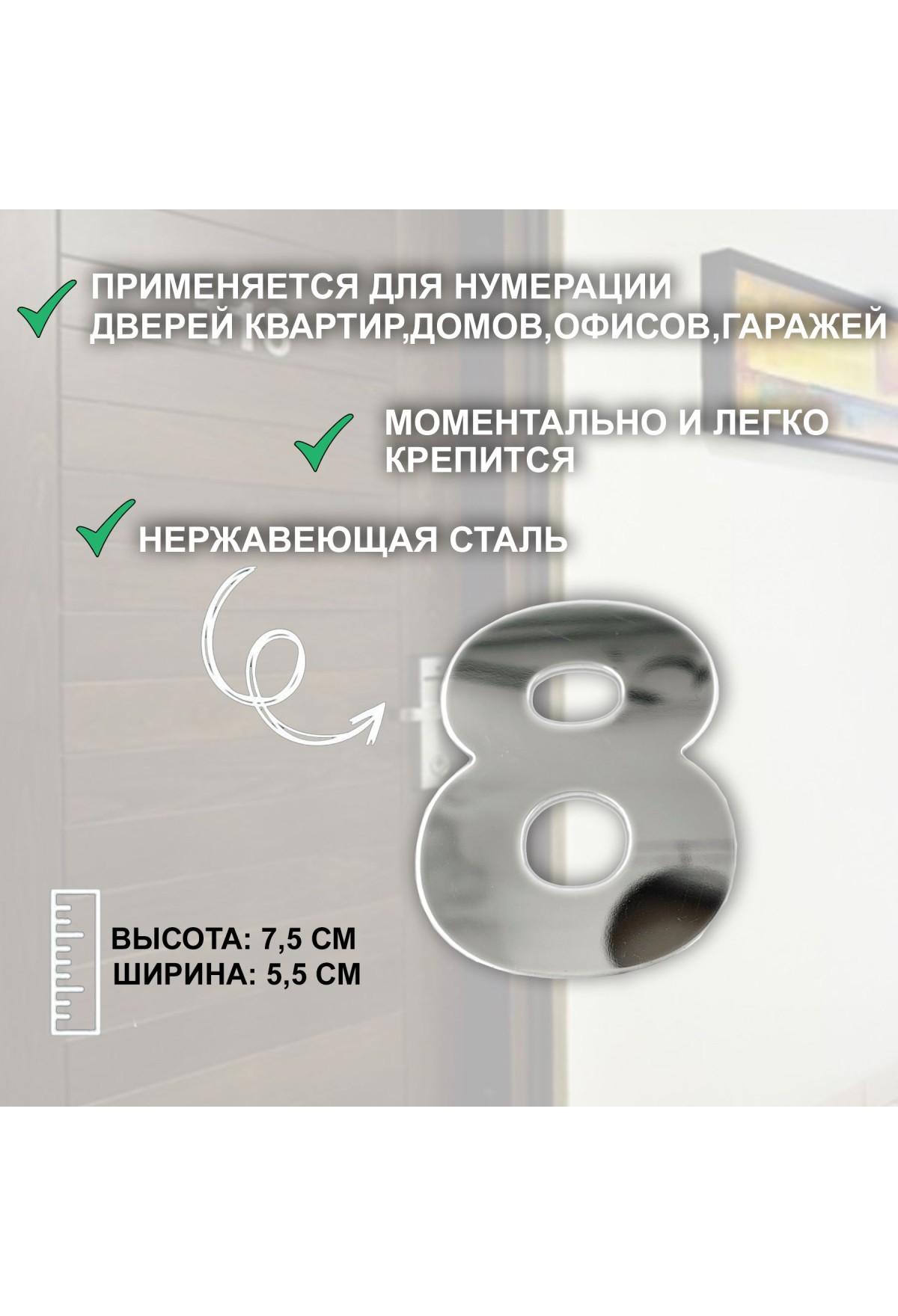 ХБ Дверная цифра "8" металл 77*55мм, на клеевой основе - Хром