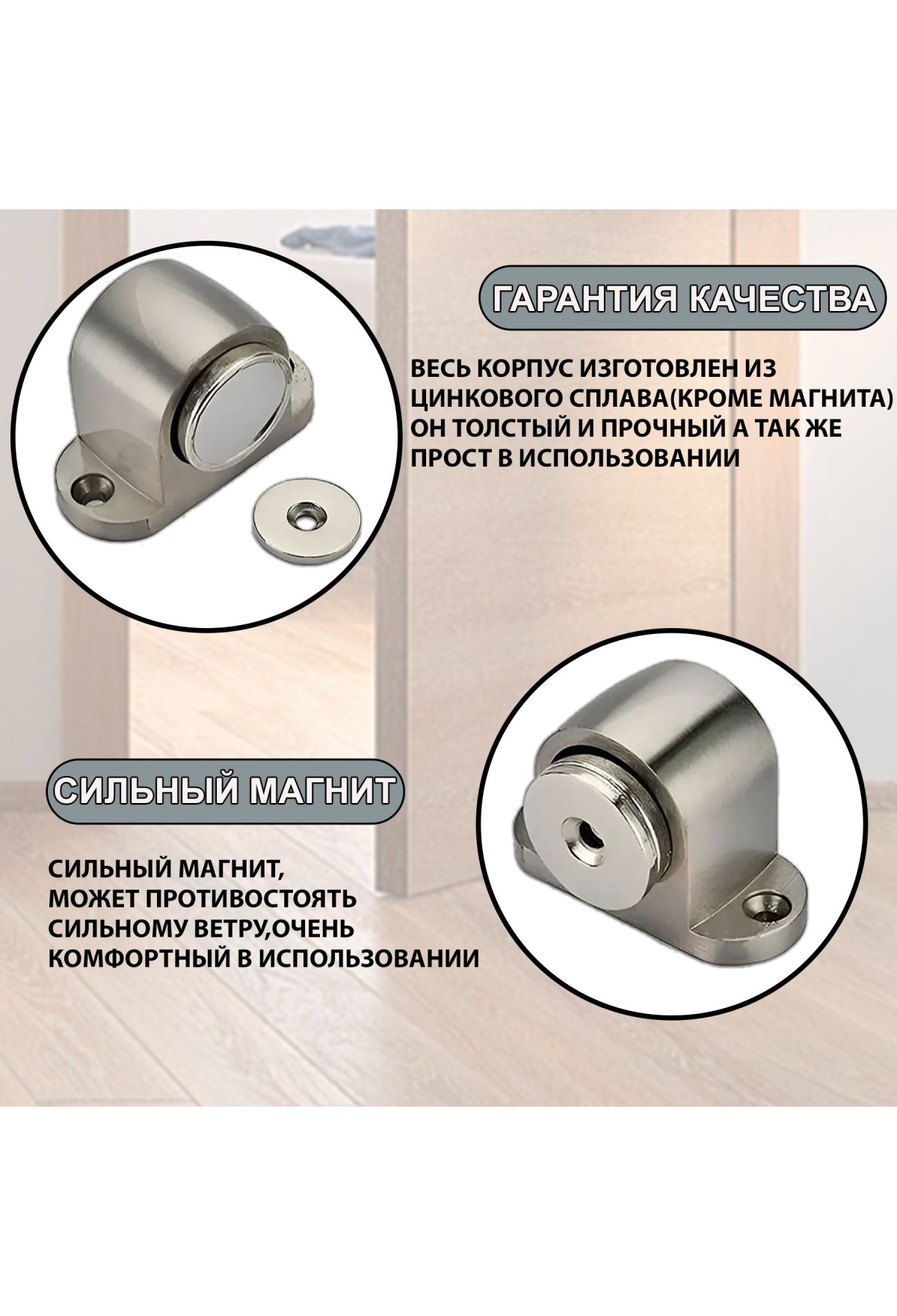 Этот инновационный напольный ограничитель позволит вам избежать повреждений вашей двери и защитить стену от нежелательных отметин. Упор для дверей имеет сильный магнитный механизм, который надежно фиксирует дверь и предотвращает ее несанкционированное движение. Крепится фиксатор дверной магнитный очень просто и быстро, не требуя дополнительного инструмента или технических навыков.