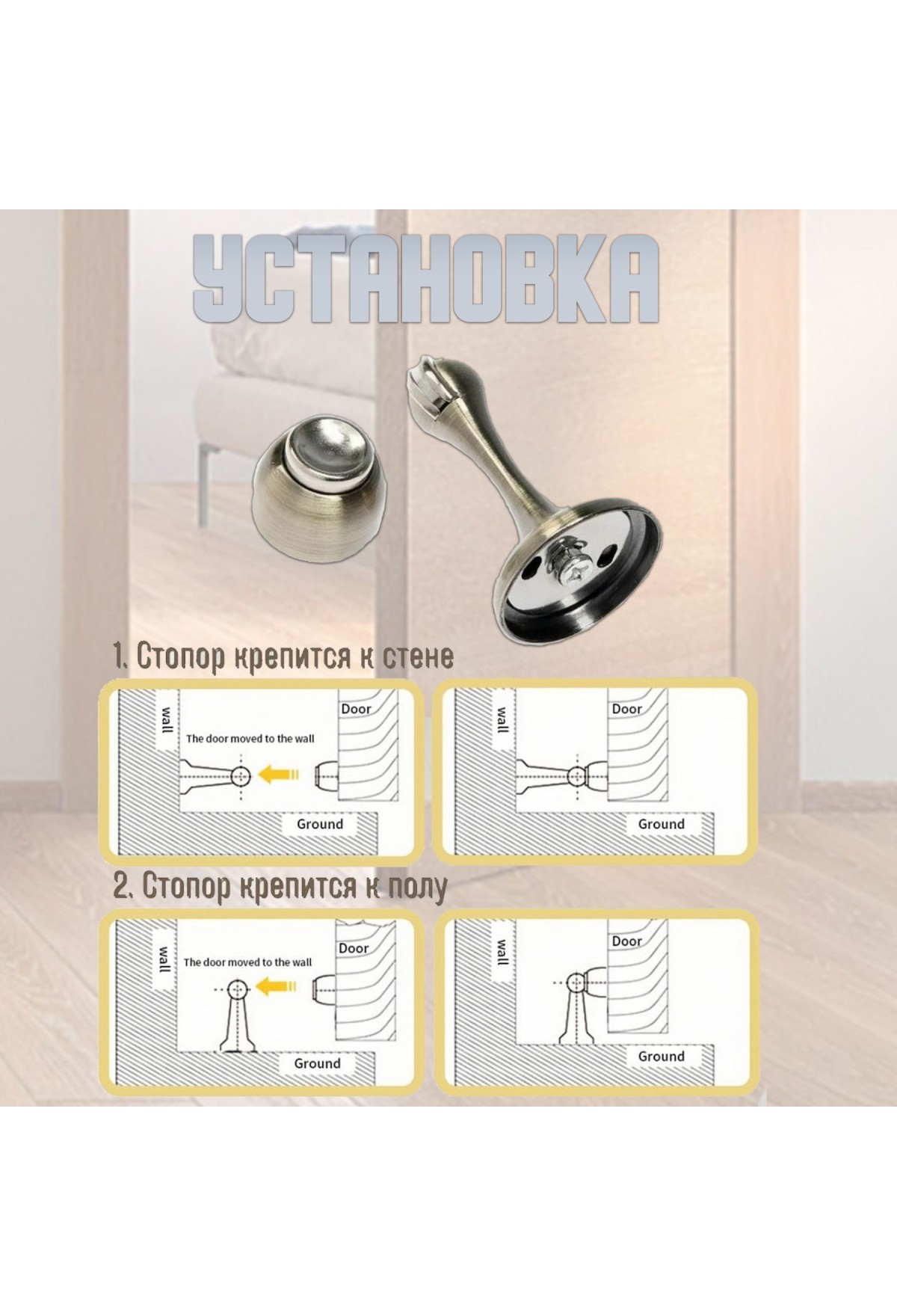 Надежная защита вашей двери и стены - гарантия долговечности и сохранности домашней атмосферы. Металлический стоппер для дверей не только предотвратит повреждения, но и станет идеальным дополнением вашего интерьера благодаря своему элегантному дизайну. Выбирайте фиксатор дверной магнитный, который подходит под стиль вашей комнаты и сделайте акцент на деталях.