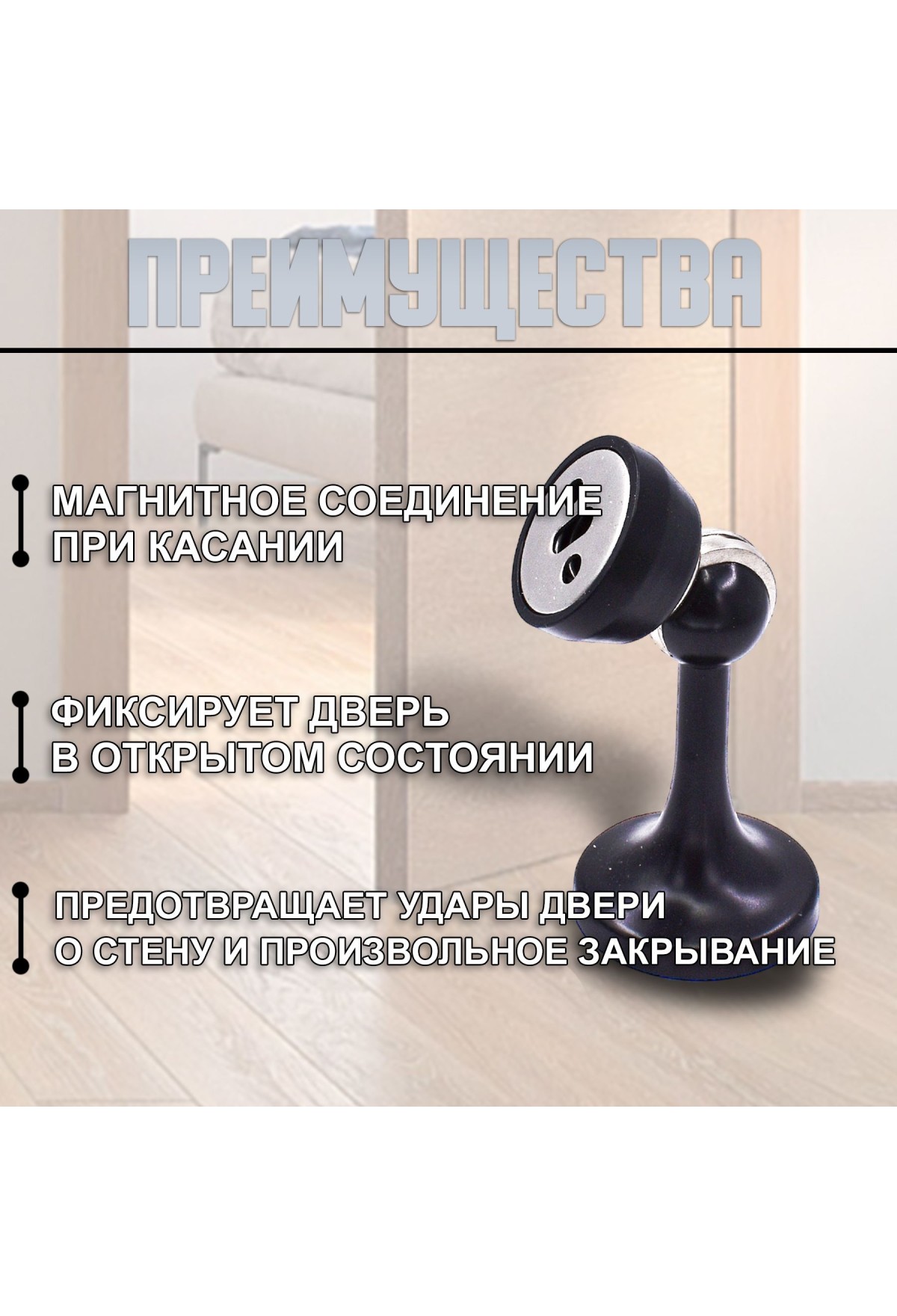 Этот инновационный напольный ограничитель позволит вам избежать повреждений вашей двери и защитить стену от нежелательных отметин. Упор для дверей имеет сильный магнитный механизм, который надежно фиксирует дверь и предотвращает ее несанкционированное движение. Крепится фиксатор дверной магнитный очень просто и быстро, не требуя дополнительного инструмента или технических навыков.