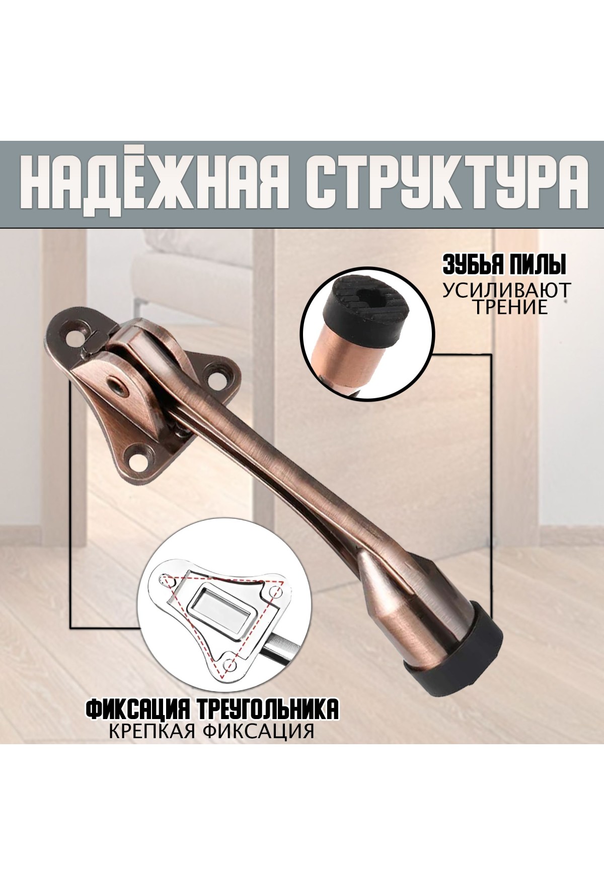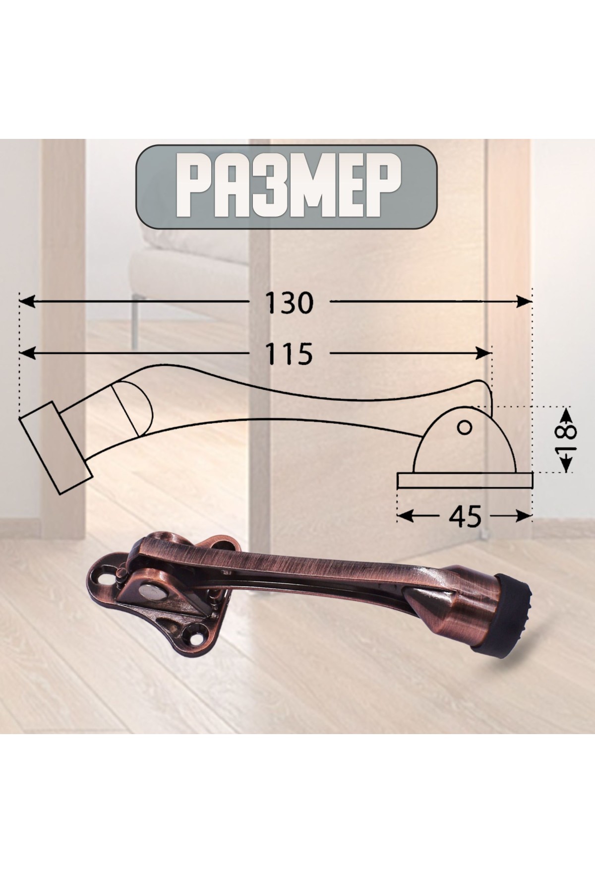 Упор Подходит для любых типов дверей, устойчив на любых покрытиях - бетон, ламинат, плитка, керамогранит и других