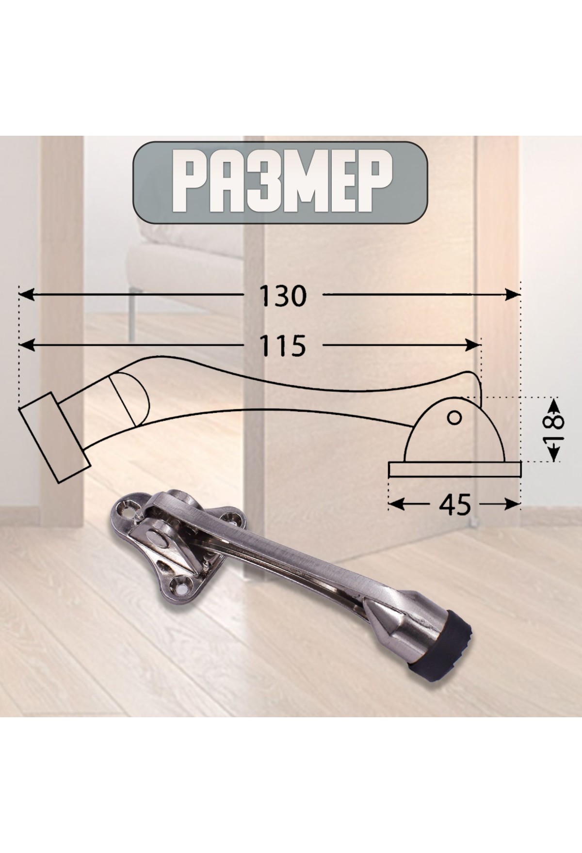 Упор Подходит для любых типов дверей, устойчив на любых покрытиях - бетон, ламинат, плитка, керамогранит и других