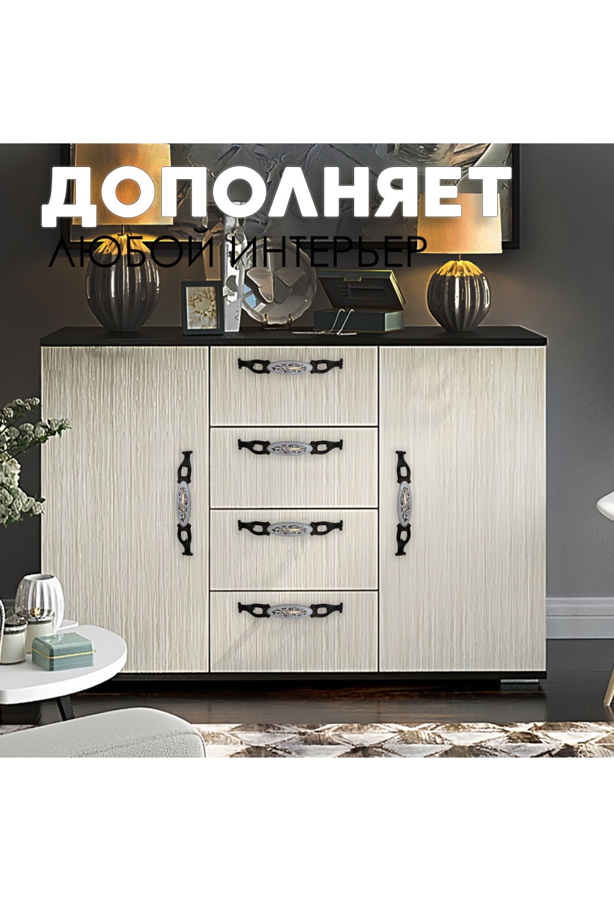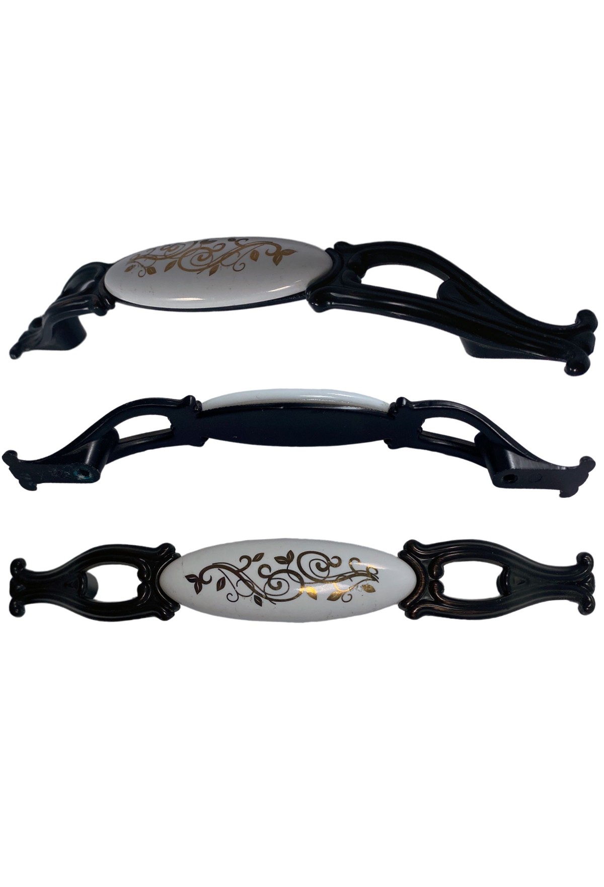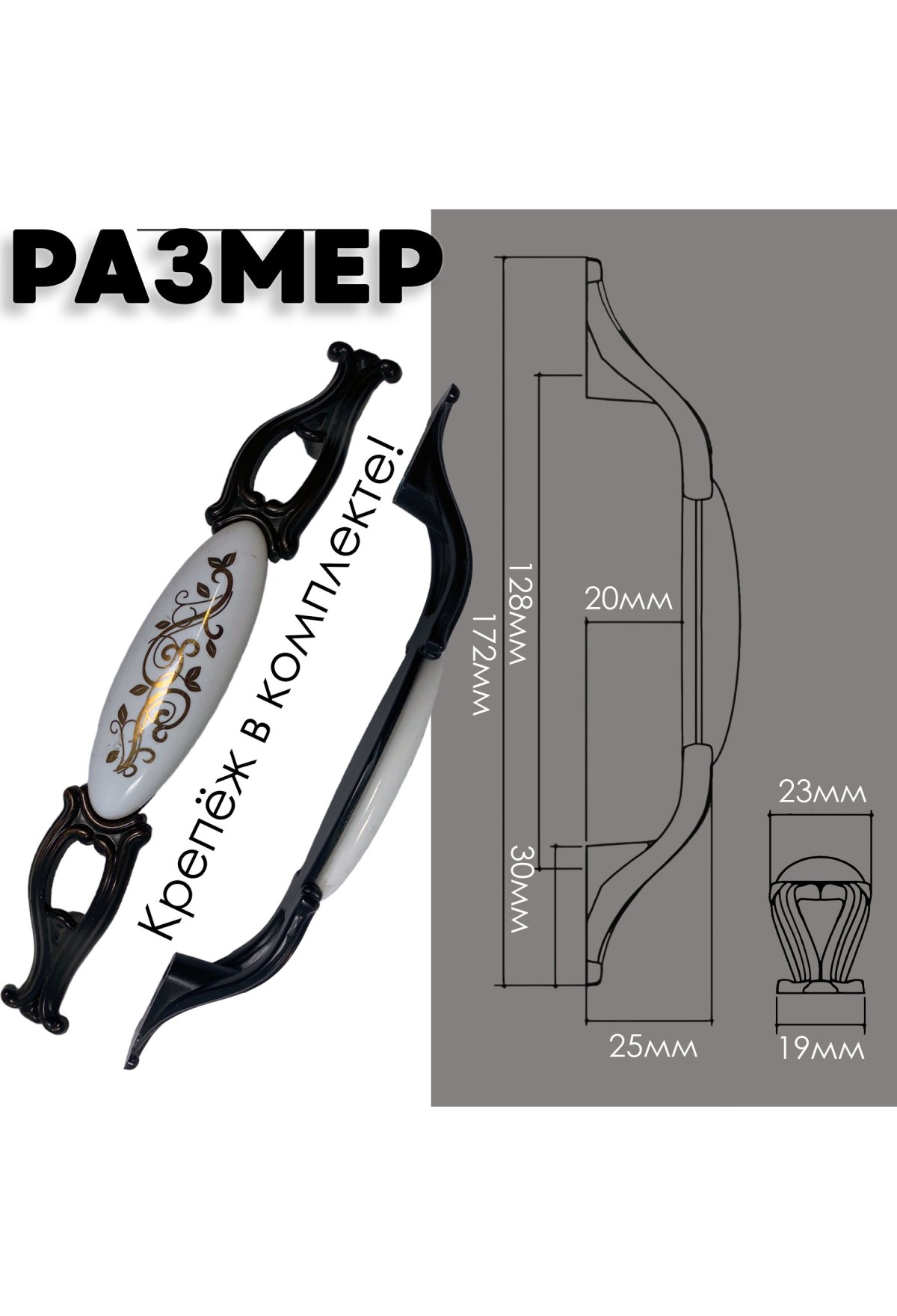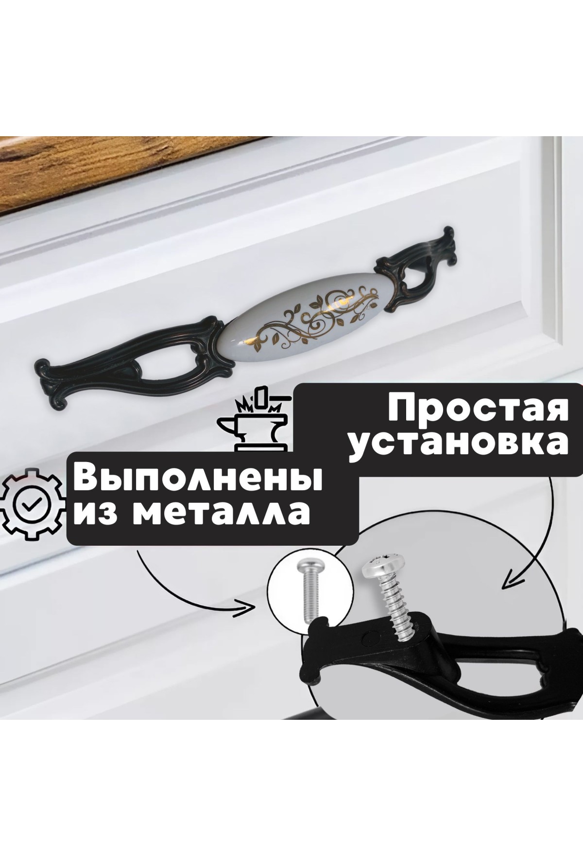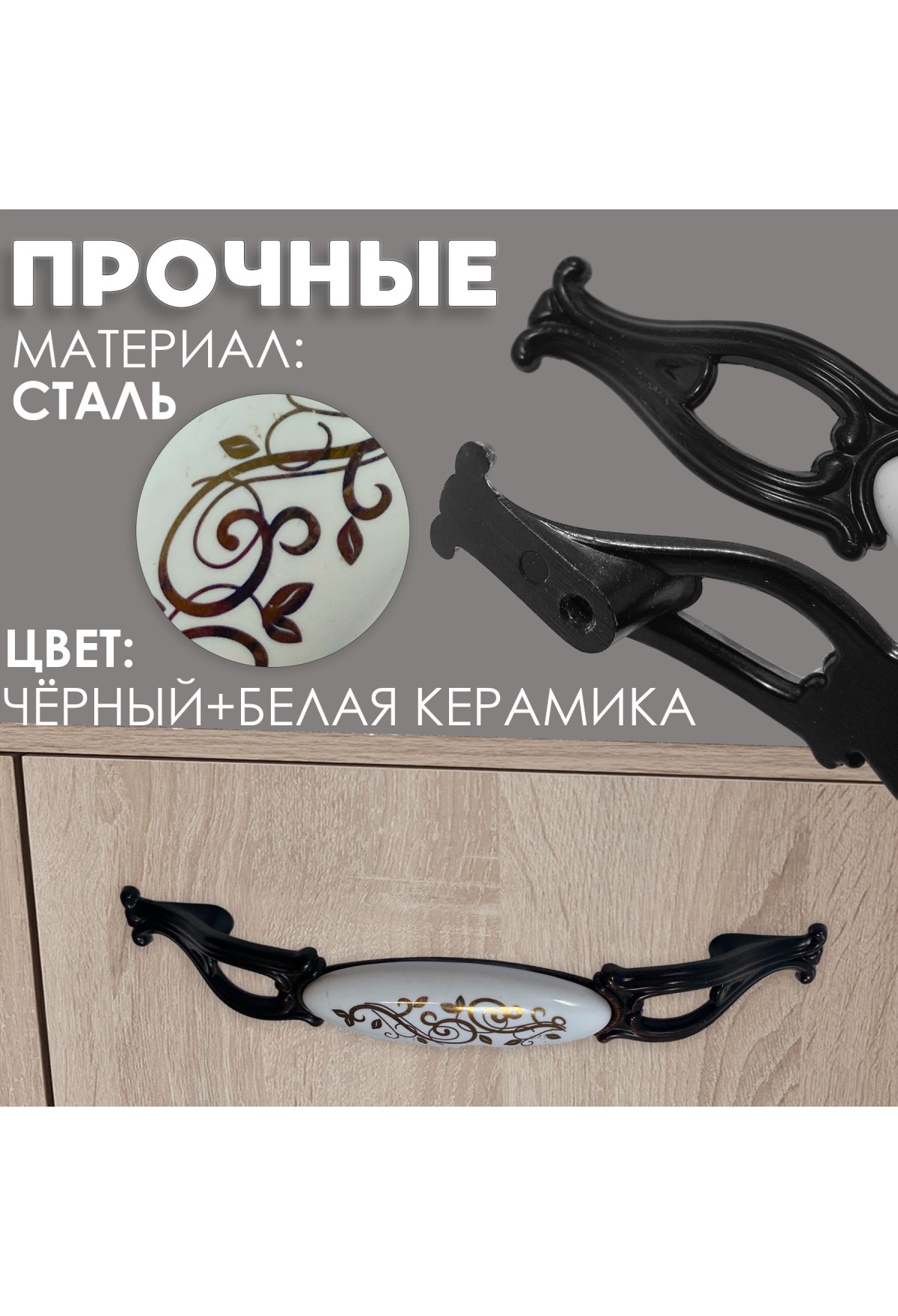 ХБ Керамическая ручка мебельная MOD-1 128мм с узором Чёрная 8шт