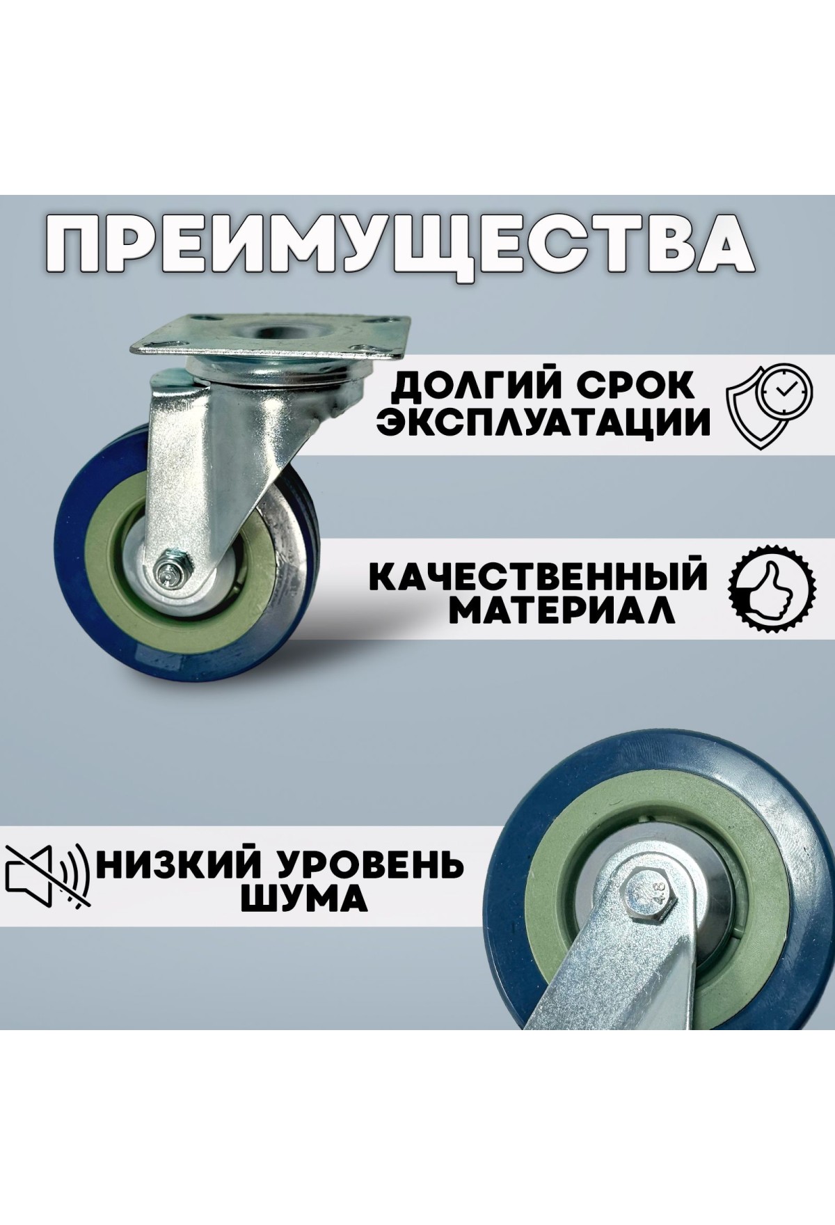 Основание изготовлено из оцинкованной стали, промышленные колеса из резины премиум качества, благодаря этому они обладают повышенной износостойкостью и отлично поглощают вибрацию.