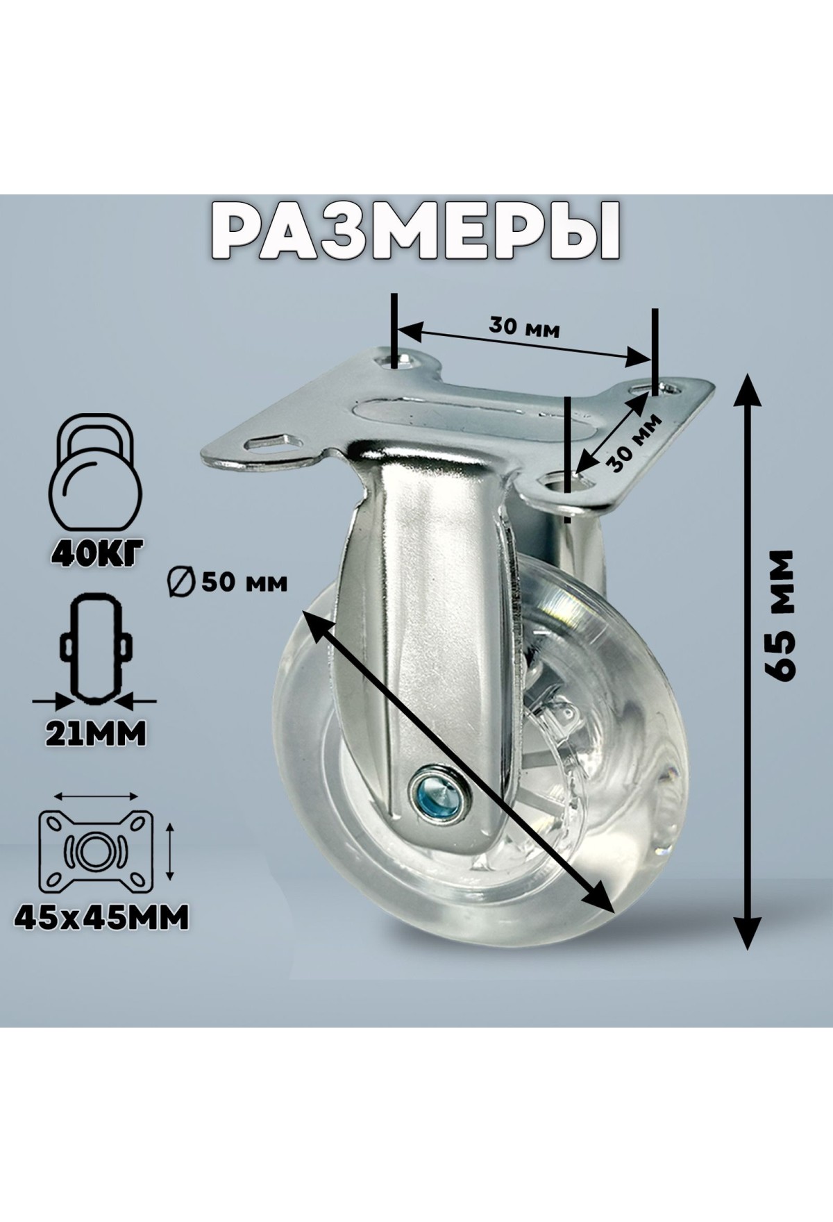 ХБ Колесо мебельное неповоротное усиленное 50мм, прозрачные 2шт