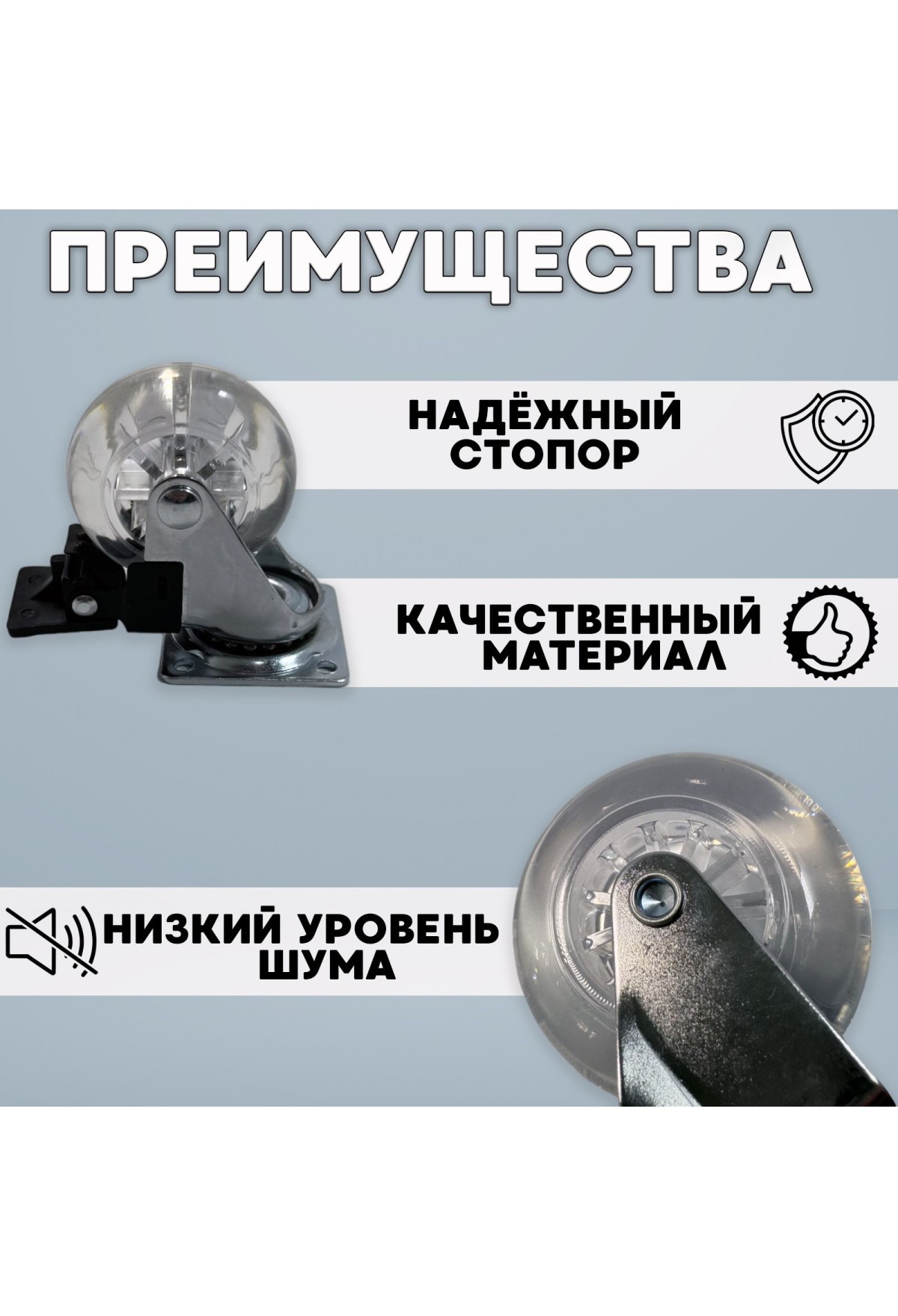 Прозрачные колеса подходят для различных типов мебели, включая столы, стулья, диваны и шкафы. Легко устанавливаются посредством металлической пластины (площадки) и обеспечивают надежное крепление, что делает их идеальным выбором для любой мебели.