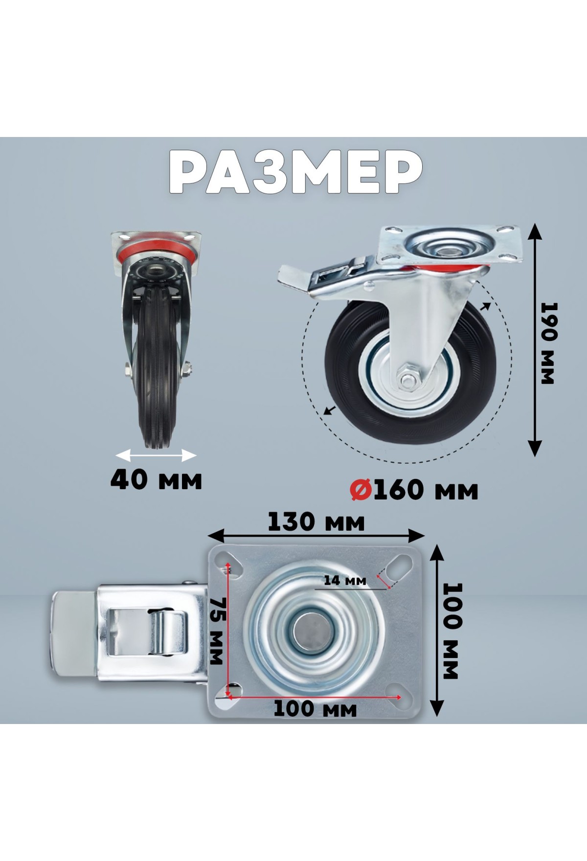 Специальная резина обеспечивает отличное сцепление с поверхностью, минимизируя шансы на скольжение и обеспечивая плавное передвижение вашего оборудования. Легко маневрирует и позволяет передвигаться без усилий даже по неровным поверхностям. Мы стремимся предложить вам продукцию, которая удовлетворит все ваше требования. Идеально подойдет для широкого спектра производственных задач и поможет вам увеличить эффективность вашего рабочего процесса.