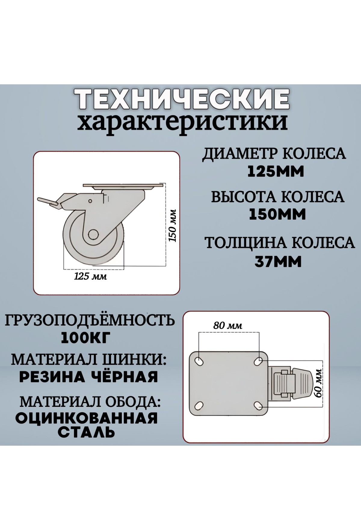 ХБ Колесо промышленное поворотное с тормозом 125мм 2шт