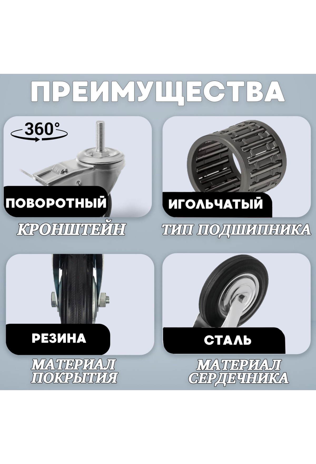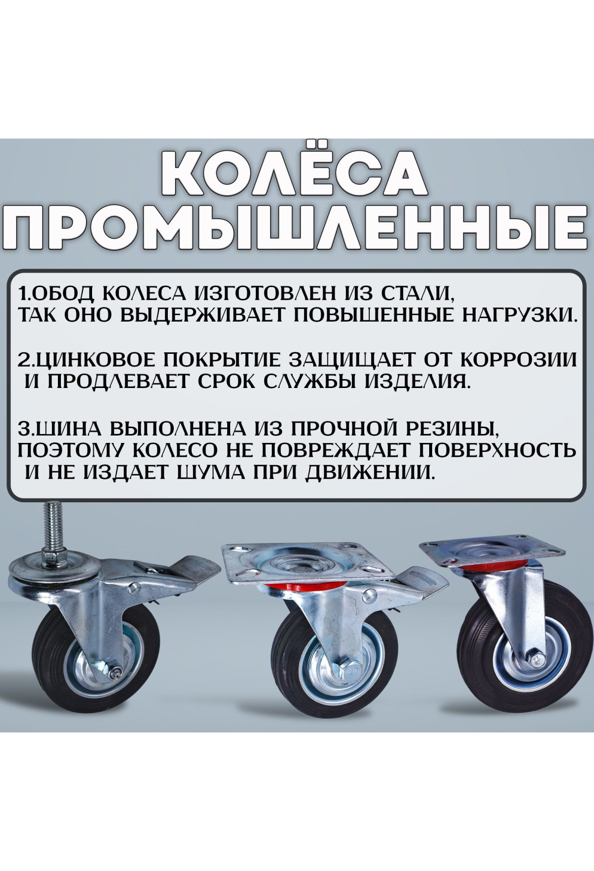 Наше колесо промышленное поворотное винт М12 с тормозом 125мм идеально подойдет для широкого спектра производственных задач и поможет вам увеличить эффективность вашего рабочего процесса.