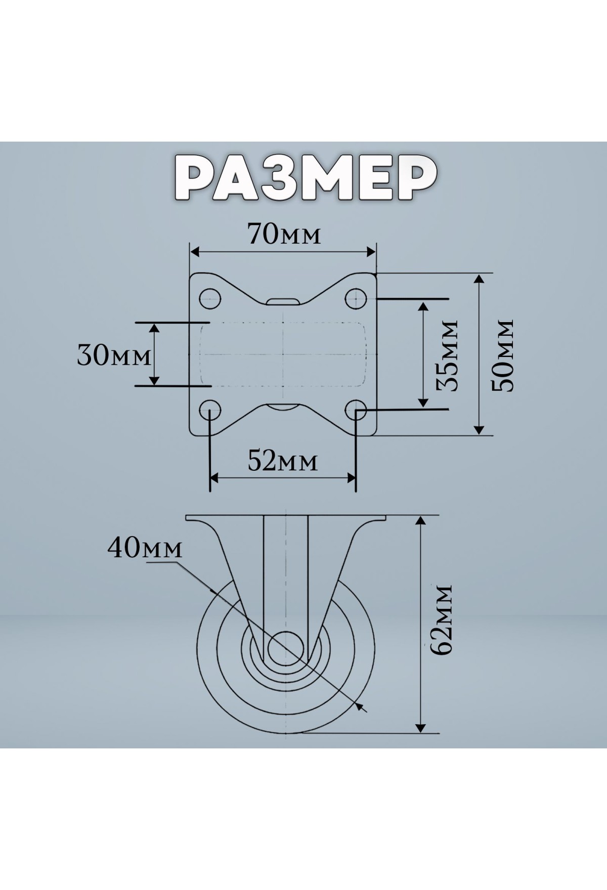Диаметр колеса составляет 40 мм, что является оптимальным размером для большинства видов мебели. Оно не будет выглядеть громоздким или нелепым на вашей мебели, а наоборот, добавит ей элегантности и функциональности.