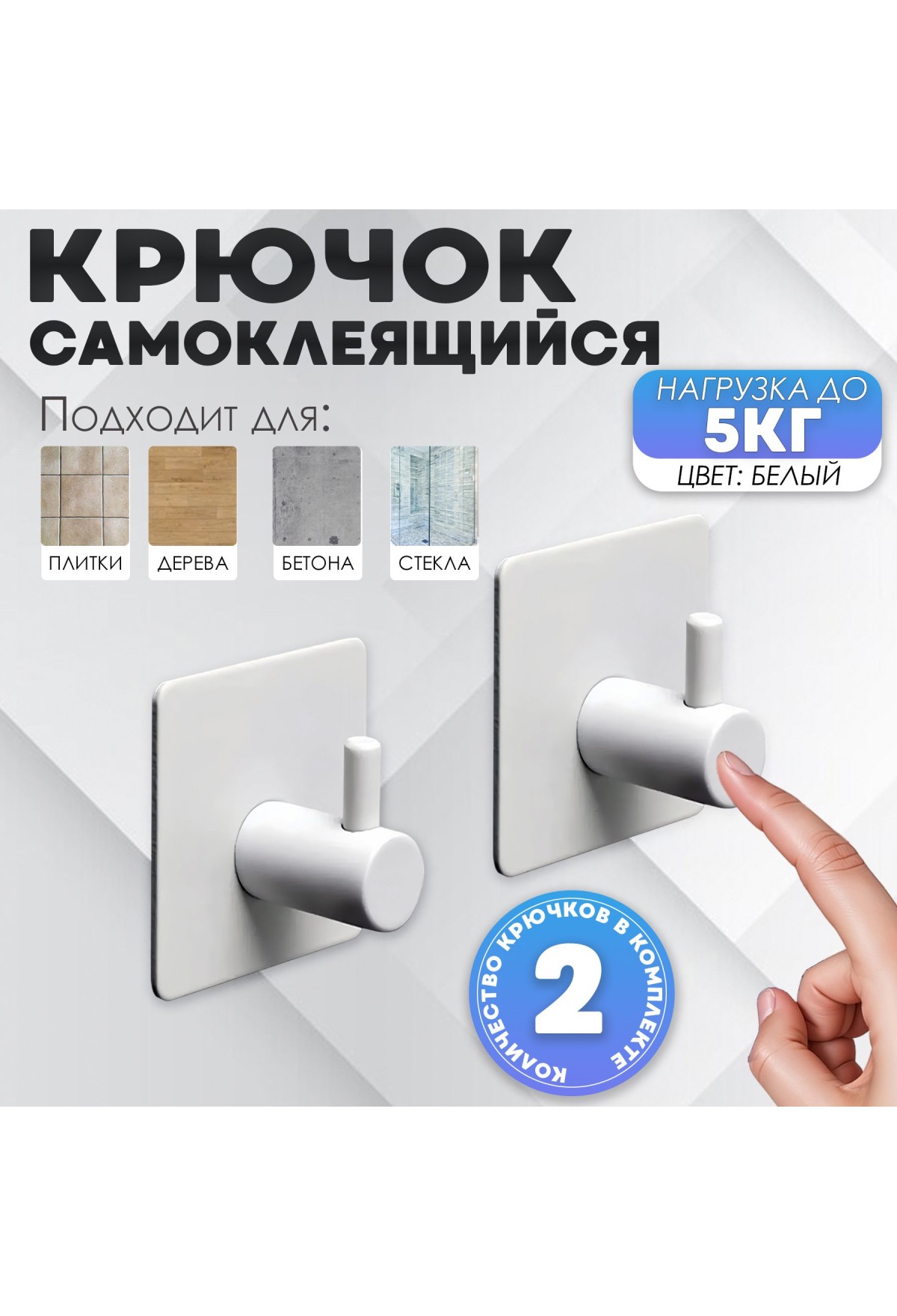 Крючки самоклеящиеся металлические для ванной и кухни, белые 2 шт