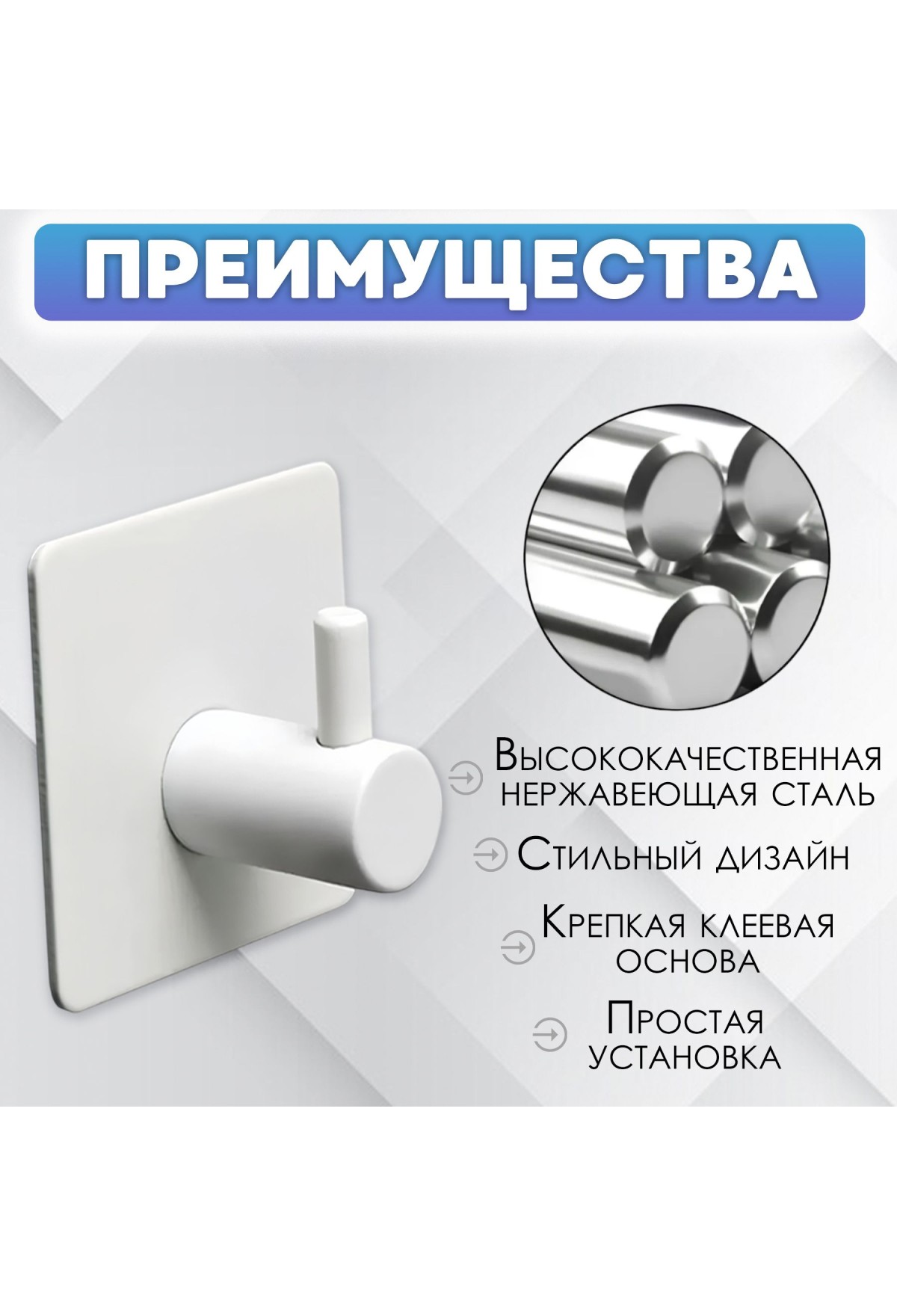 Прочные самоклеящиеся крючки для ванной из нержавеющей стали на сверхлипком двухстороннем скотче. Великолепное сочетание оригинального стиля и премиального качества. Самоклеящиеся вешалки нужно приклеивать строго по инструкции, во избежание падения (см. карусель фотографии ). Двусторонняя липучка без сверления выдерживает вес до 5 кг, можете забыть про падающие халаты и полотенца. Крюки можно использовать в любом помещении - это прекрасные настенные аксессуары для банных принадлежностей или мочалки. Держатели на липкой ленте - удобны для хранения вещей в детской комнате. Незаменимы для приборов на кухне, в гардеробную, прихожую, коридор и на кухне. Универсальные вешалки можно использовать для подхватов штор и занавесок. Их влагостойкость исключает появление плесени и грибка - современное решение для влажных помещений. Отлично выдерживает объемные халаты. Не оставляет следов после снятия.