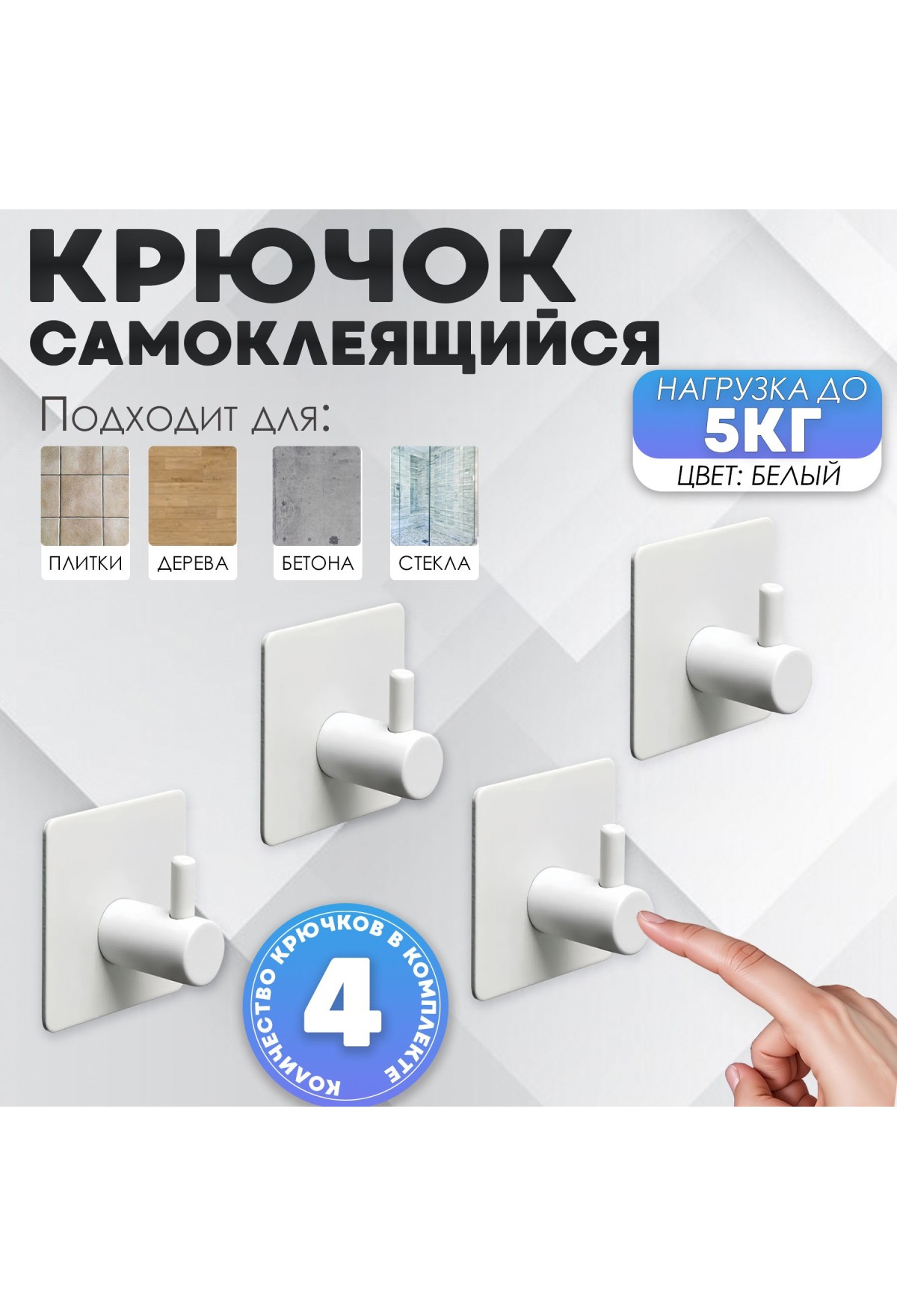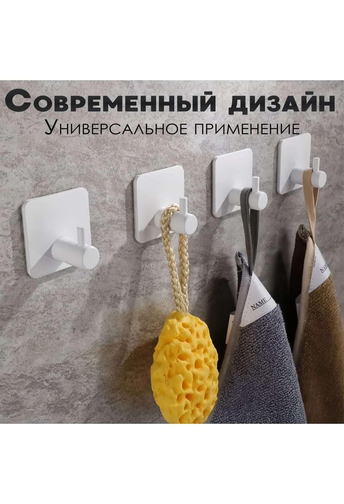 Крючки самоклеящиеся металлические для ванной и кухни, белые 4 шт