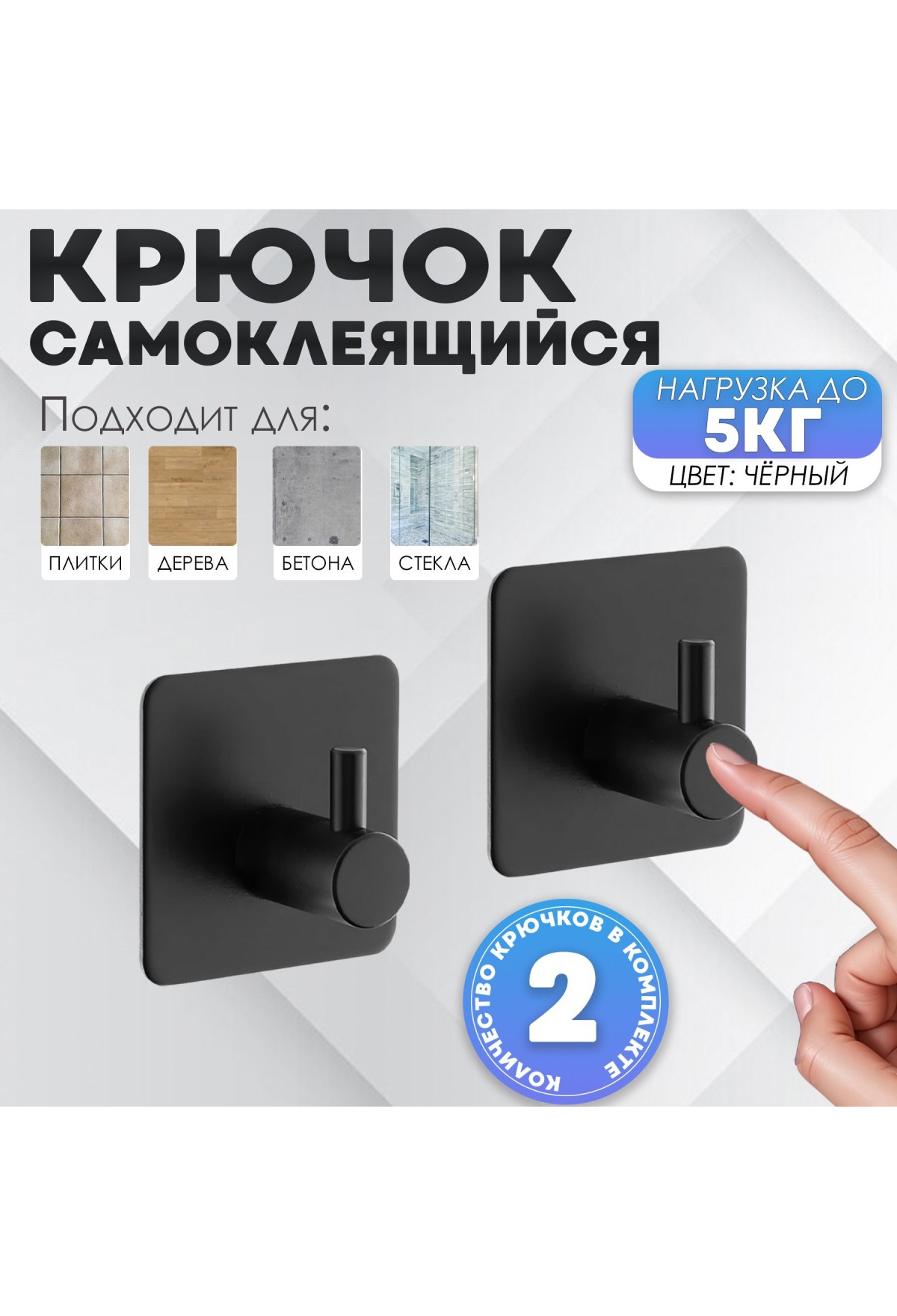 Крючки самоклеящиеся металлические для ванной и кухни, чёрные 2 шт 0 2.60 р. 5.00 р.