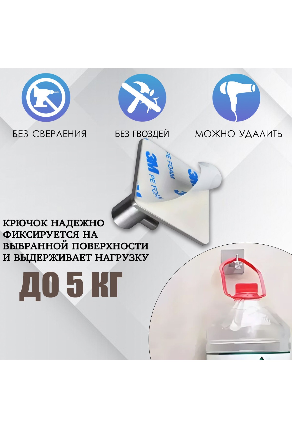 Прочные самоклеящиеся крючки для ванной из нержавеющей стали на сверхлипком двухстороннем скотче. Великолепное сочетание оригинального стиля и премиального качества. Самоклеящиеся вешалки нужно приклеивать строго по инструкции, во избежание падения (см. карусель фотографии ). Двусторонняя липучка без сверления выдерживает вес до 5 кг, можете забыть про падающие халаты и полотенца. Крюки можно использовать в любом помещении - это прекрасные настенные аксессуары для банных принадлежностей или мочалки. Держатели на липкой ленте - удобны для хранения вещей в детской комнате. Незаменимы для приборов на кухне, в гардеробную, прихожую, коридор и на кухне. Универсальные вешалки можно использовать для подхватов штор и занавесок. Их влагостойкость исключает появление плесени и грибка - современное решение для влажных помещений. Отлично выдерживает объемные халаты. Не оставляет следов после снятия.
