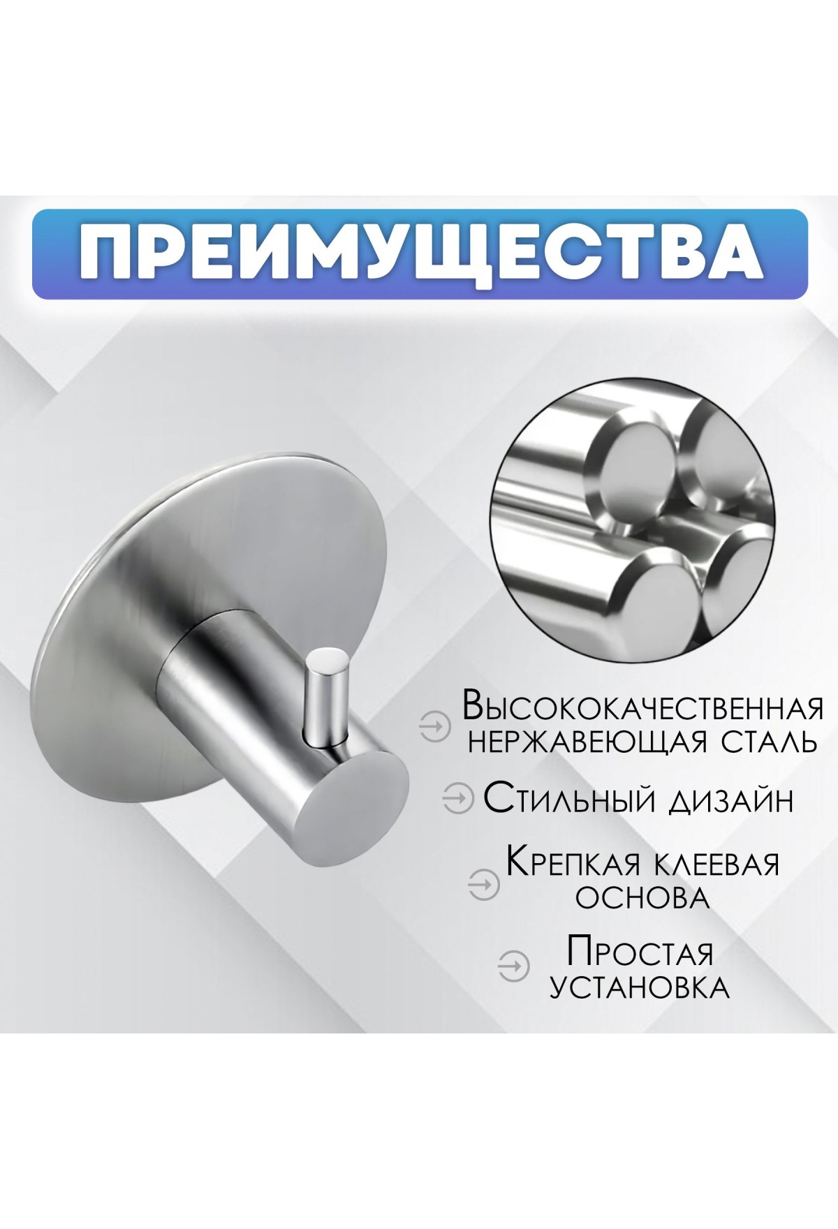 Прочные самоклеящиеся крючки для ванной из нержавеющей стали на сверхлипком двухстороннем скотче. Великолепное сочетание оригинального стиля и премиального качества. Самоклеящиеся вешалки нужно приклеивать строго по инструкции, во избежание падения (см. карусель фотографии ). Двусторонняя липучка без сверления выдерживает вес до 5 кг, можете забыть про падающие халаты и полотенца. Крюки можно использовать в любом помещении - это прекрасные настенные аксессуары для банных принадлежностей или мочалки. Держатели на липкой ленте - удобны для хранения вещей в детской комнате. Незаменимы для приборов на кухне, в гардеробную, прихожую, коридор и на кухне. Универсальные вешалки можно использовать для подхватов штор и занавесок. Их влагостойкость исключает появление плесени и грибка - современное решение для влажных помещений. Отлично выдерживает объемные халаты. Не оставляет следов после снятия.