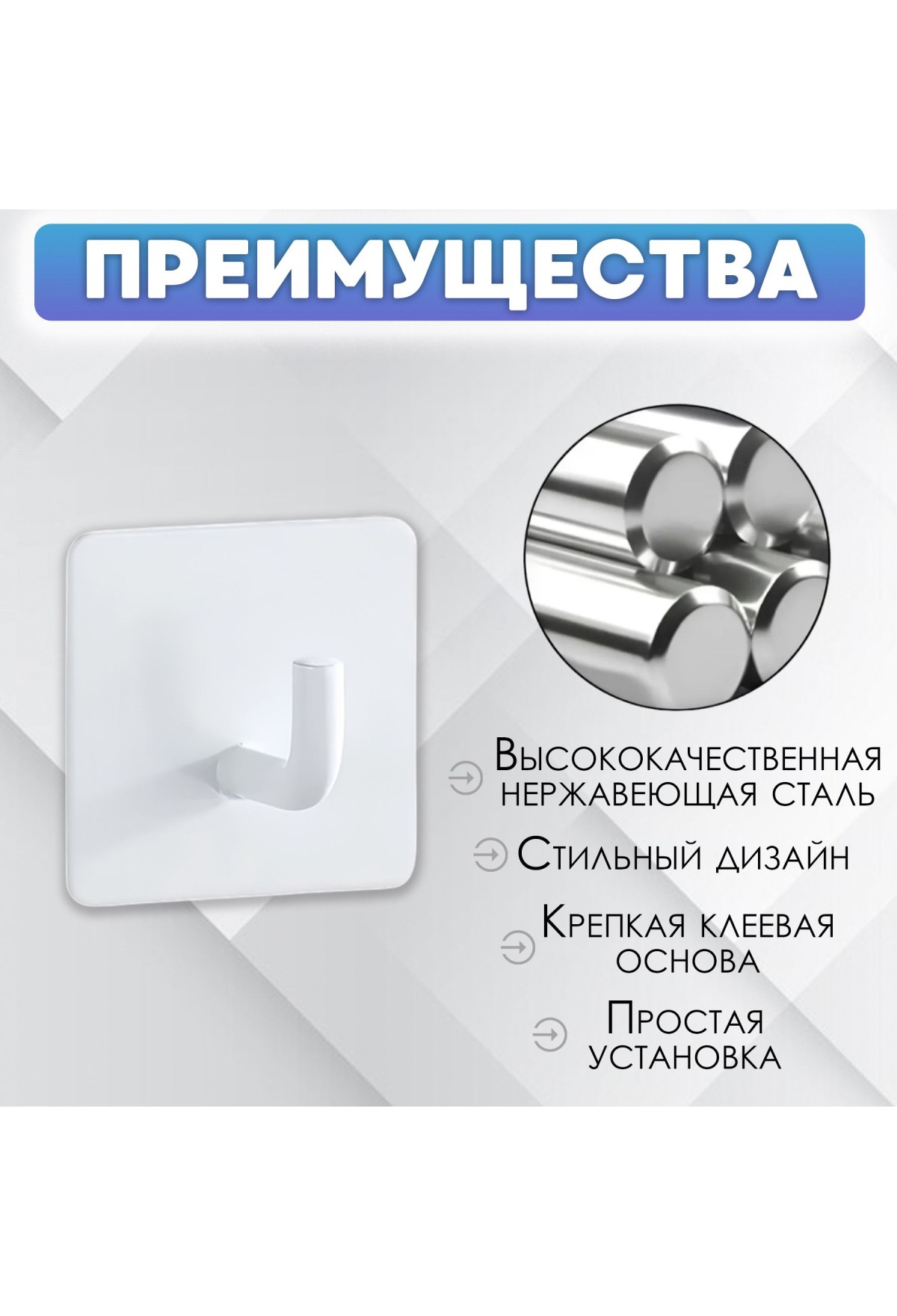 Крючки самоклеющиеся - это незаменимые помощники в организации пространства. Они идеально подходят как для ванной комнаты, так и для кухни. Благодаря специальной самоклеящейся основе, установка крючков происходит быстро и легко, без необходимости сверления и использования дополнительных крепежных элементов.