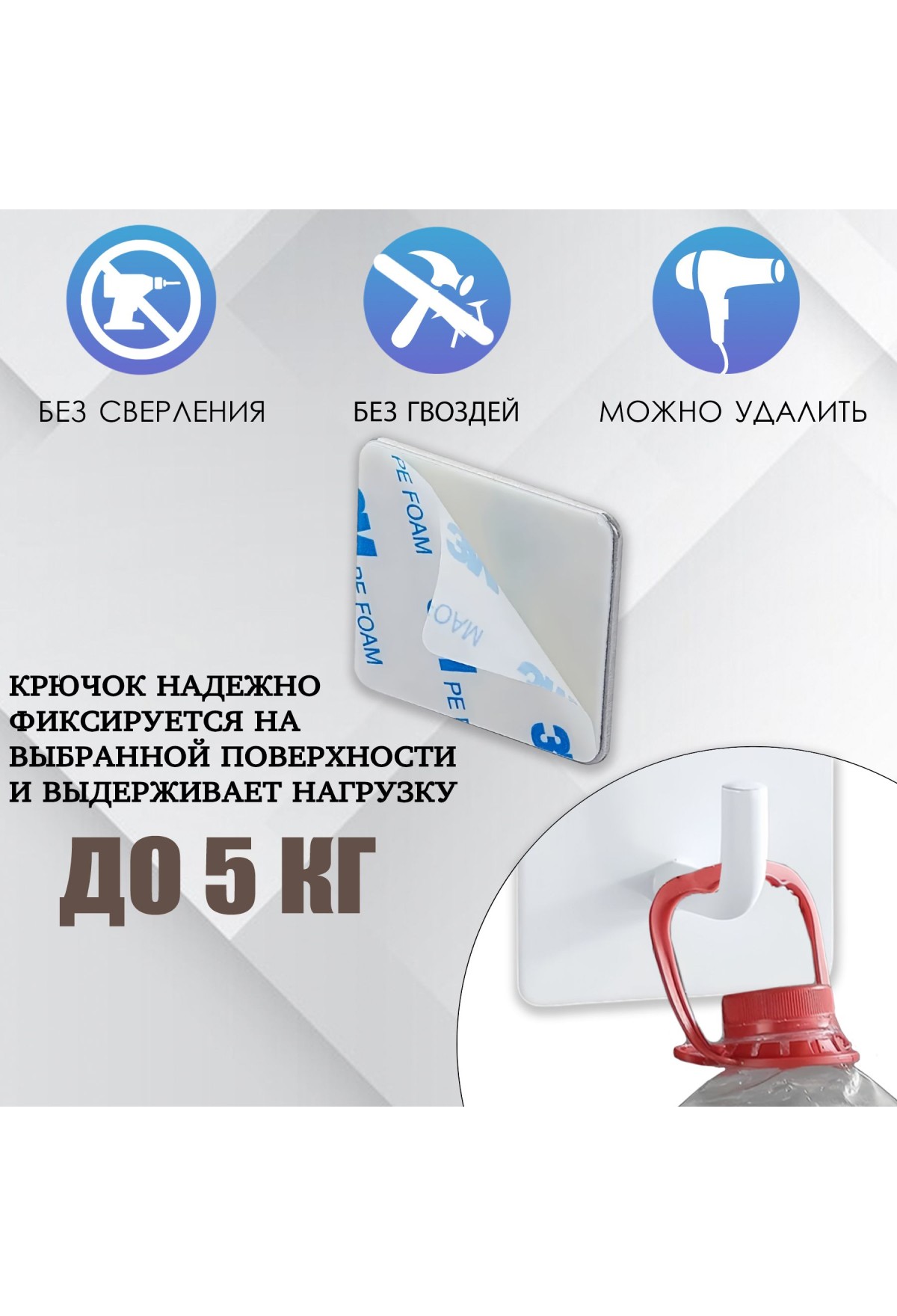 Крючки самоклеющиеся для ванной и кухни изготовлены из высококачественных материалов, что гарантирует их долговечность и надежность. Они прочно держатся на любой поверхности - на плитке, стекле, металле и пластике. Благодаря этому, вы можете быть уверены, что ваши вещи будут надежно закреплены и не упадут.