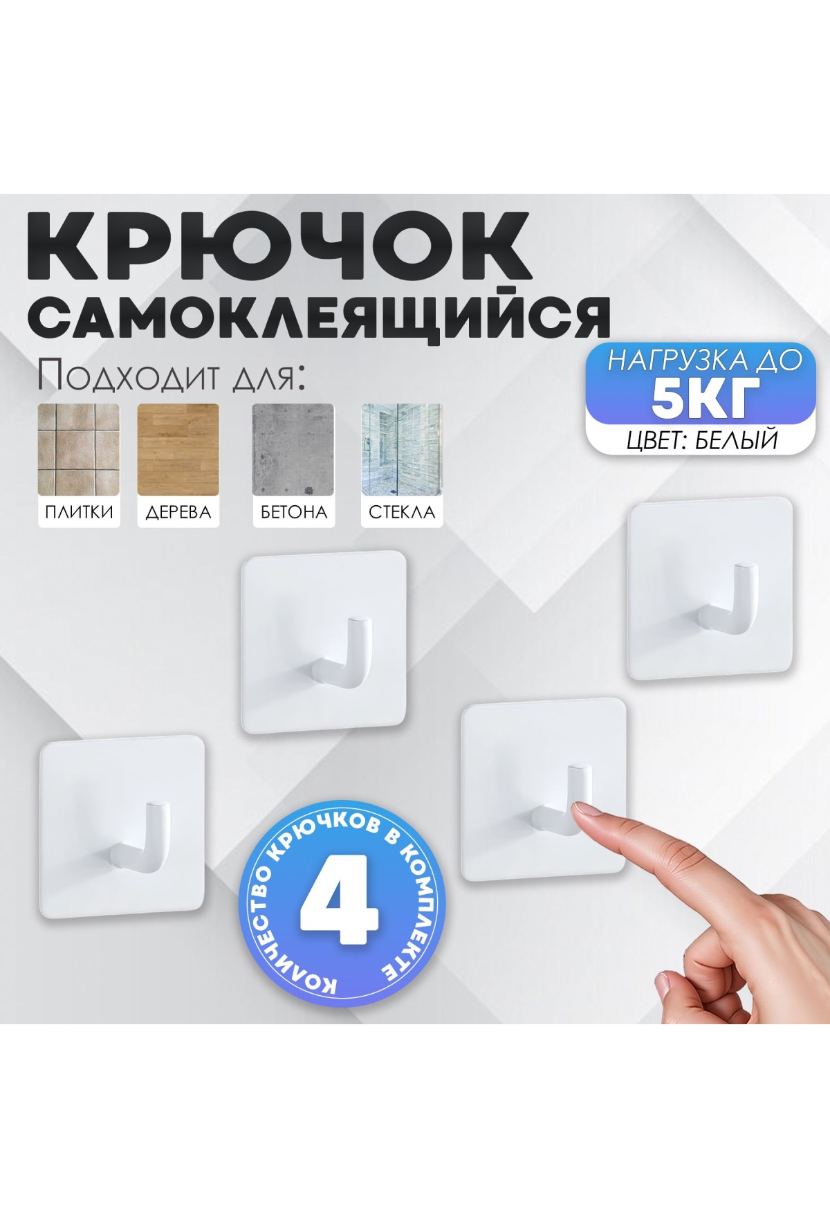 Крючки самоклеющиеся для ванной и кухни, белые 4 шт Крючок самоклеящийся металлический настенный