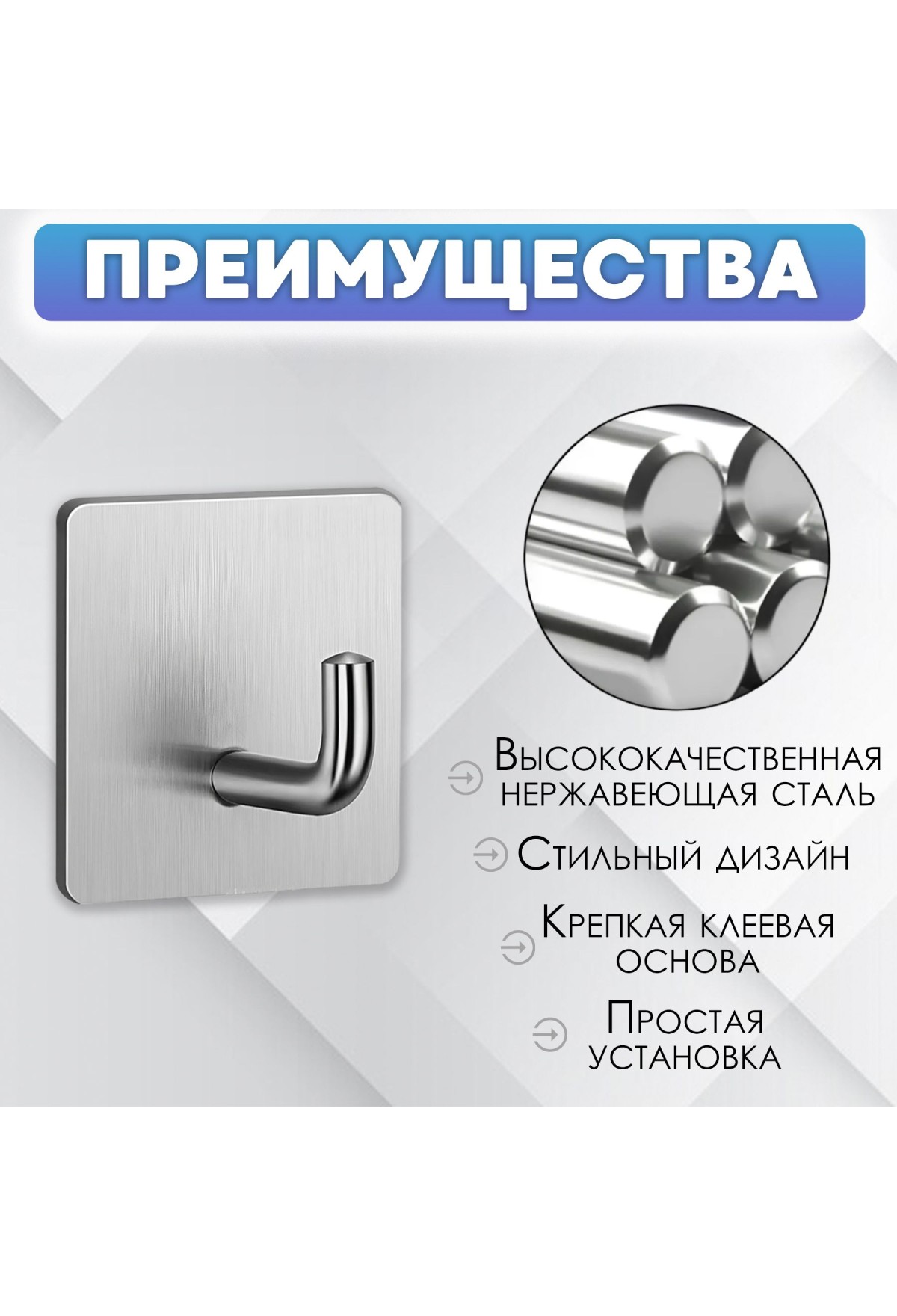 Крючки самоклеющиеся - это незаменимые помощники в организации пространства. Они идеально подходят как для ванной комнаты, так и для кухни. Благодаря специальной самоклеящейся основе, установка крючков происходит быстро и легко, без необходимости сверления и использования дополнительных крепежных элементов.