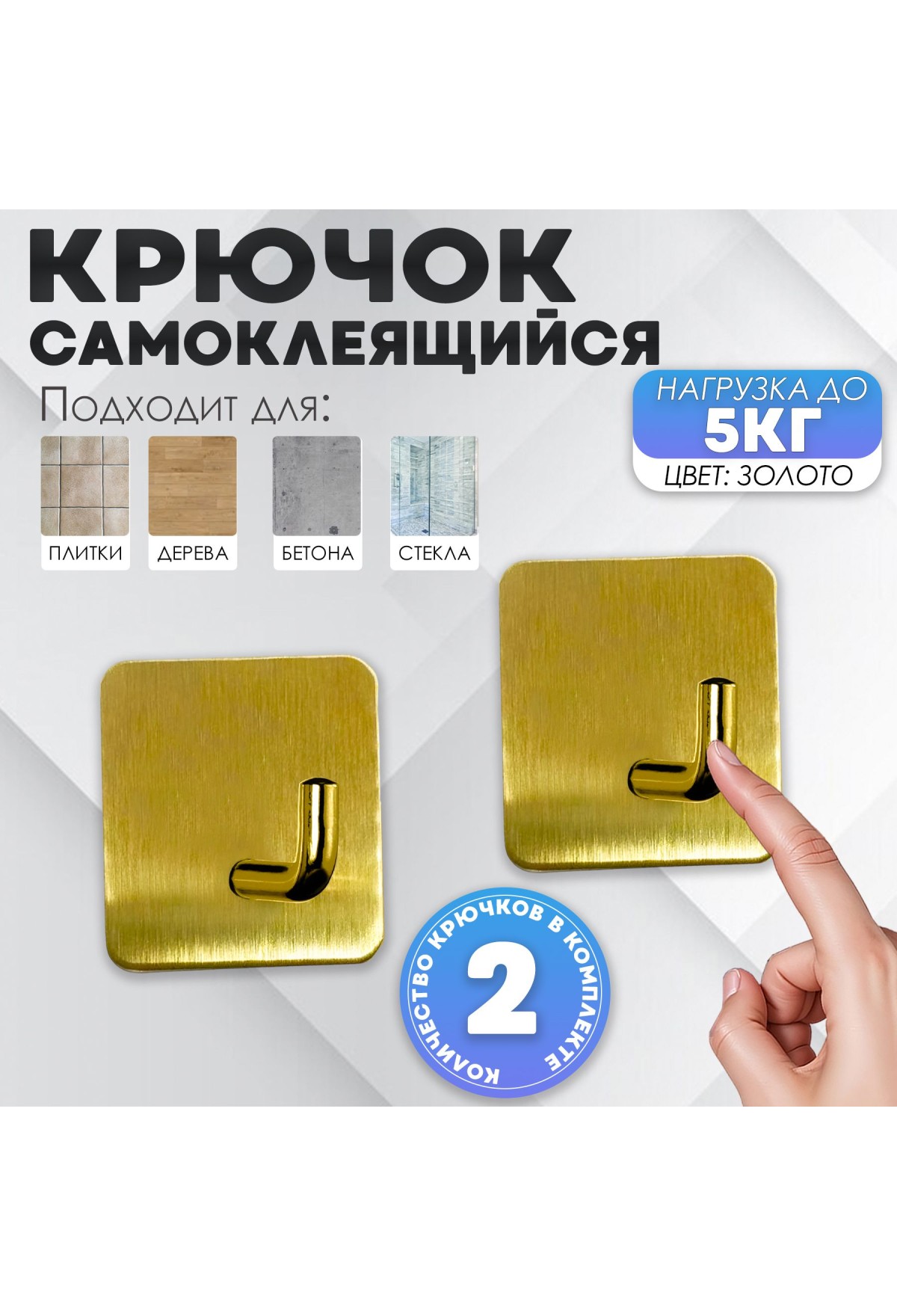 Крючки самоклеющиеся для ванной и кухни, золотые 2 шт Крючок самоклеящийся металлический настенный