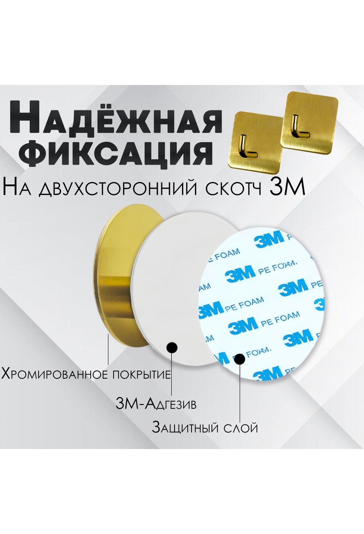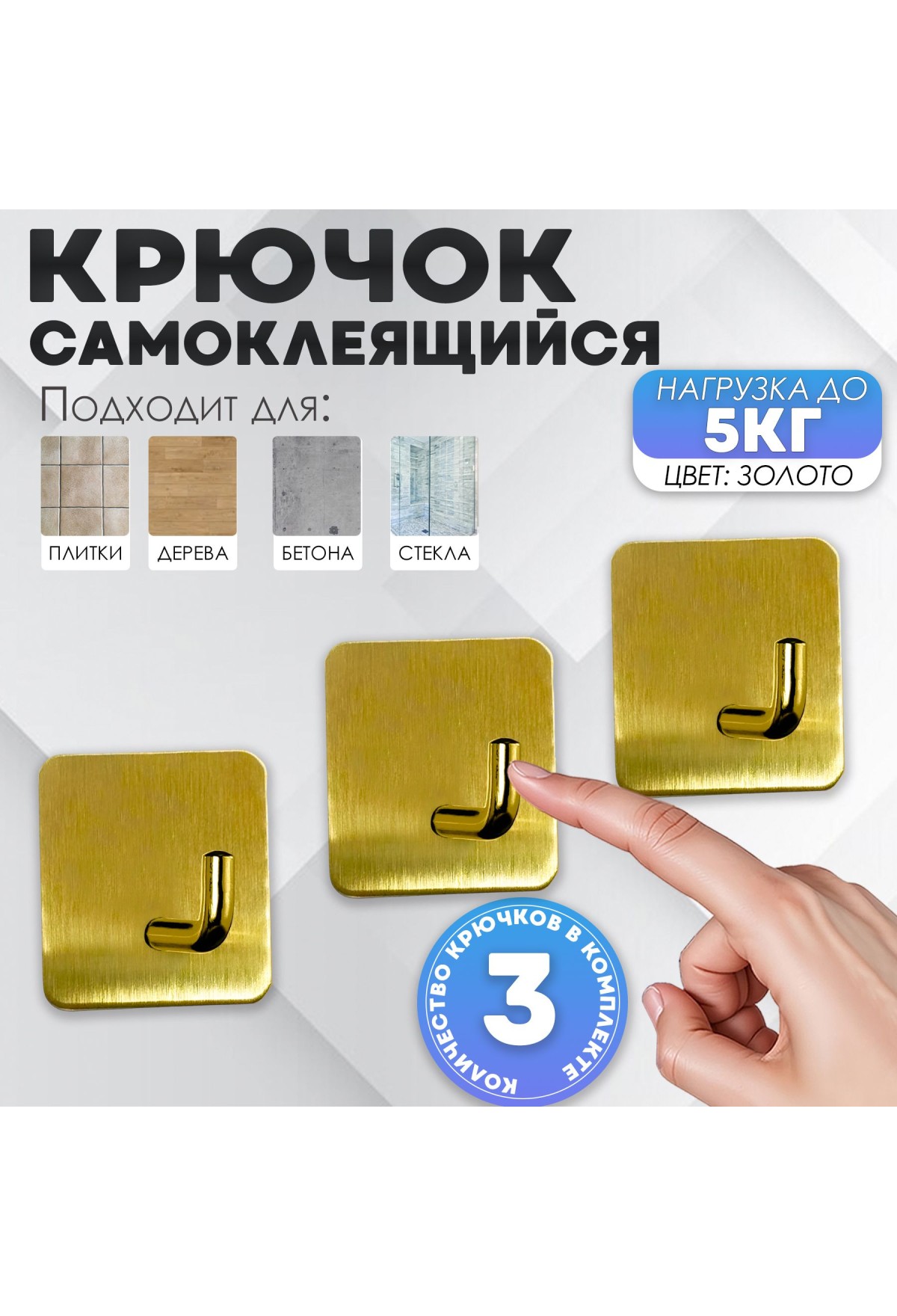 Крючки самоклеющиеся для ванной и кухни, золотые 3 шт Крючок самоклеящийся металлический настенный