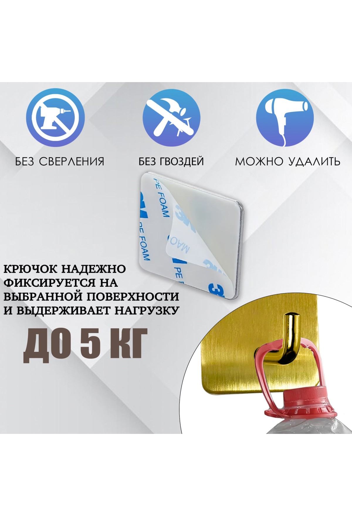 С помощью крючков самоклеющихся вы сможете удобно разместить различные предметы в ванной и на кухне. Вешалки для полотенец, держатели для мыла и дозаторы для жидкого мыла, крючки для полотенец и одежды, полки для посуды и ванной косметики - все это можно легко и надежно закрепить с помощью крючков самоклеющихся.