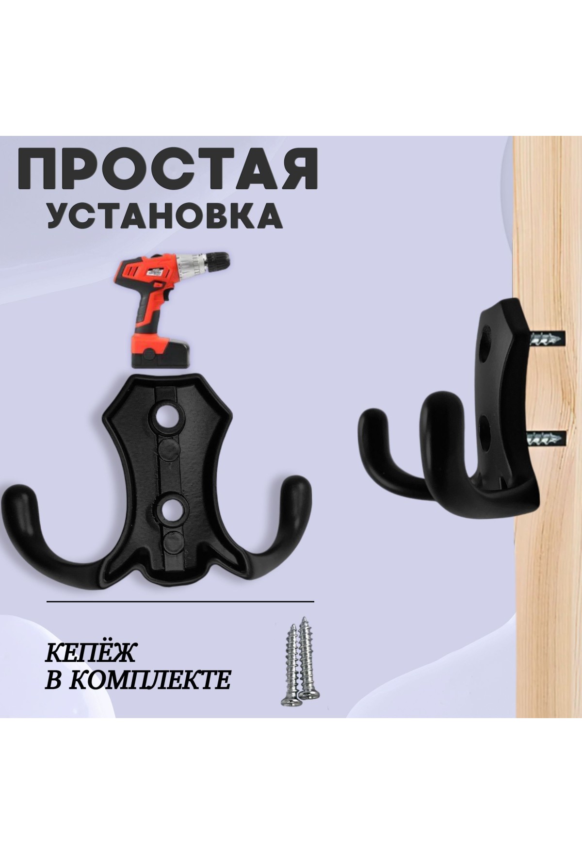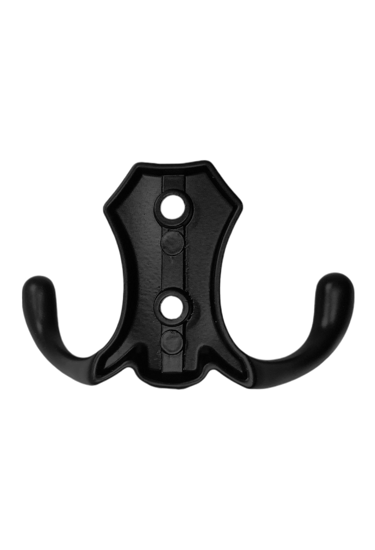 ХБ Крючок для одежды настенный двухрожковый гладкий усиленный Чёрный 1шт
