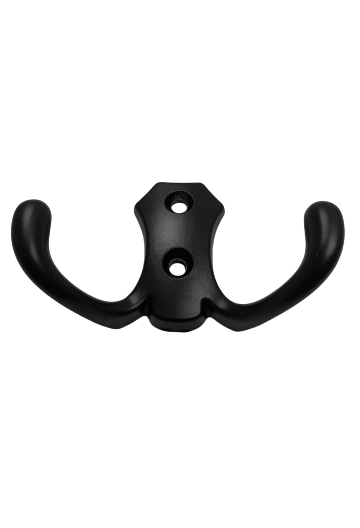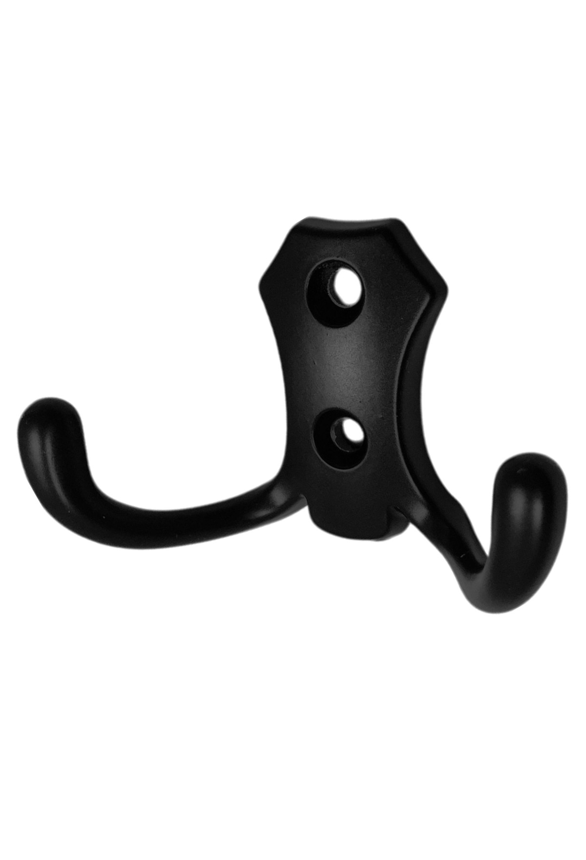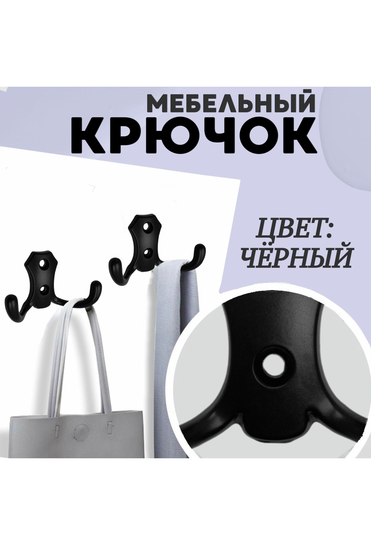ХБ Крючок для одежды настенный двухрожковый гладкий усиленный Чёрный 3шт
