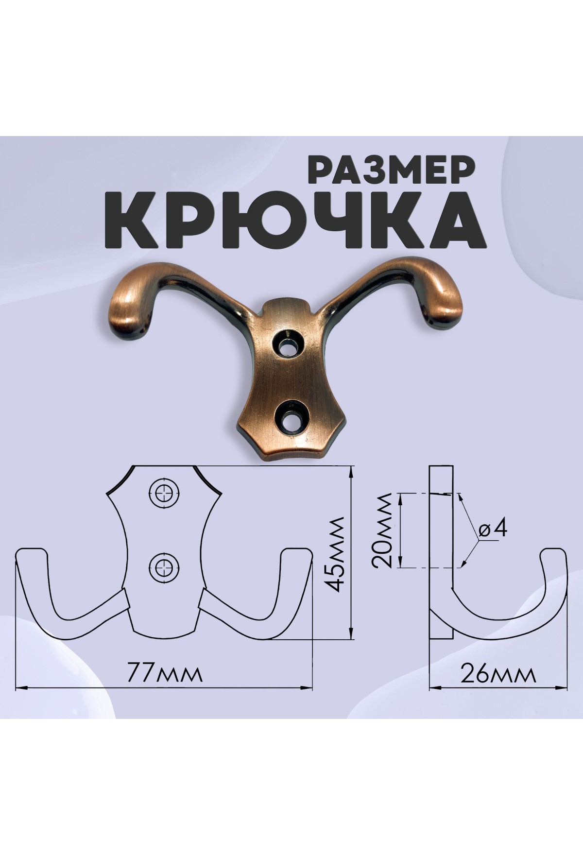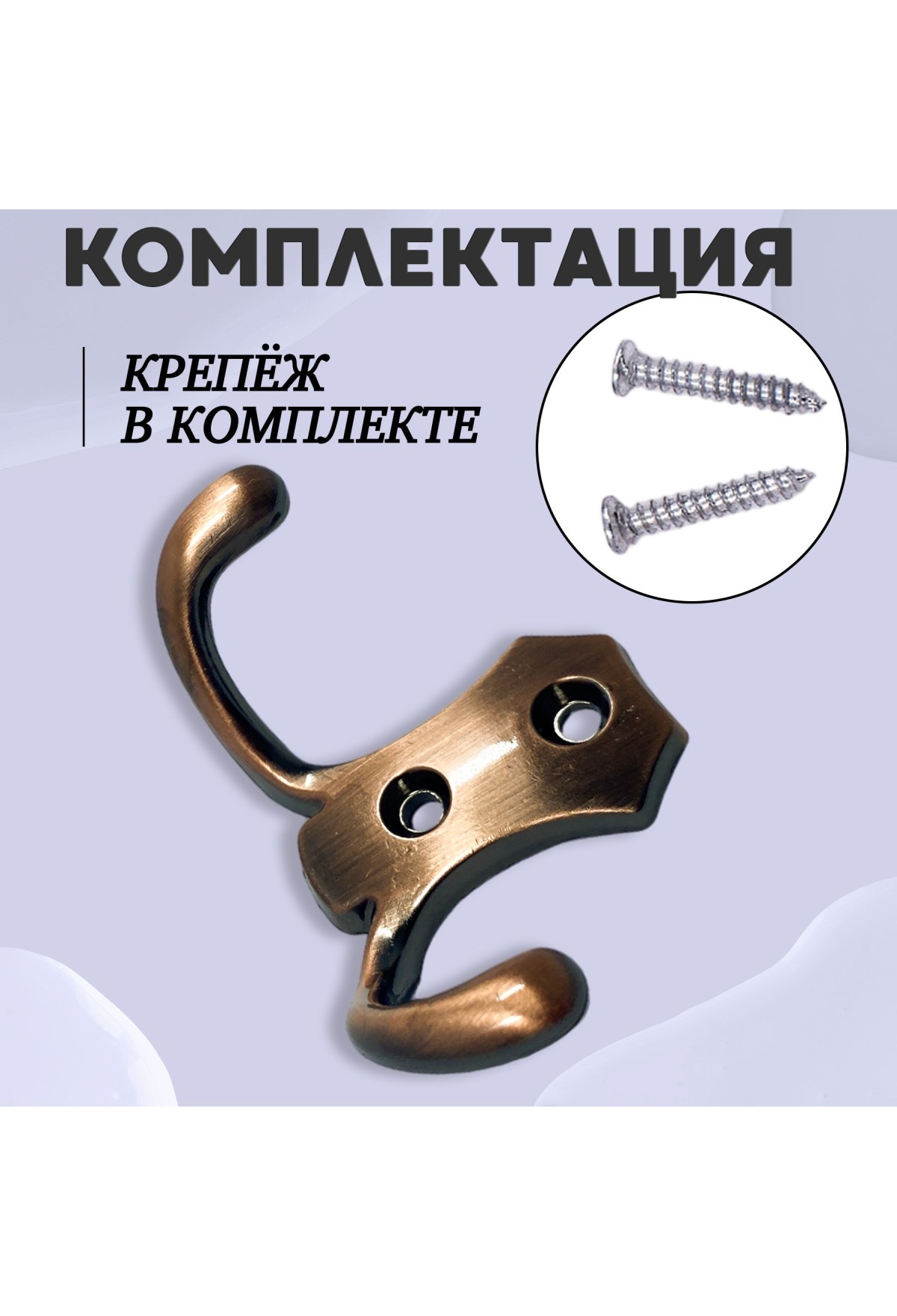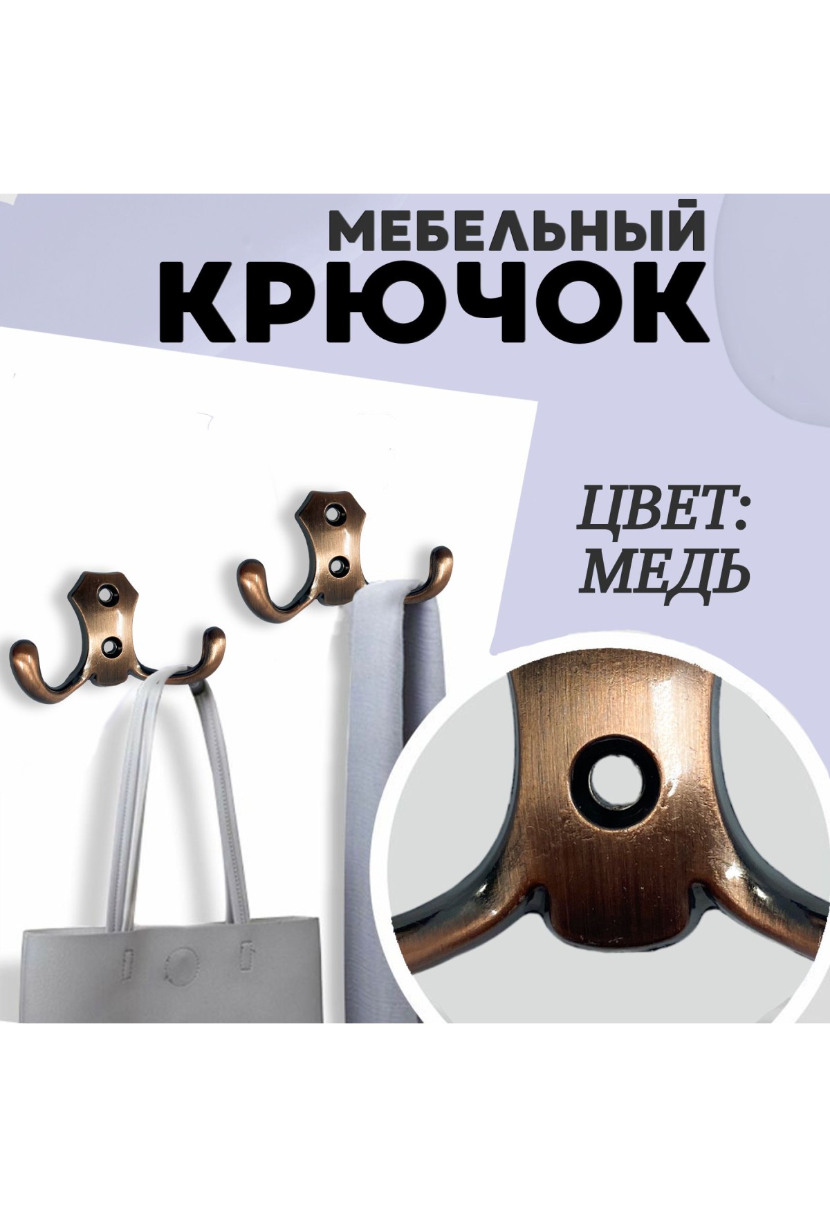ХБ Крючок для одежды настенный двухрожковый гладкий усиленный Медь 3шт
